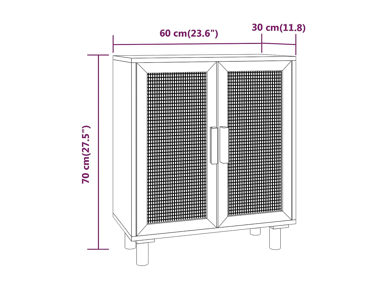 Dressoir 60x30x70 cm massief grenenhout en rattan bruin