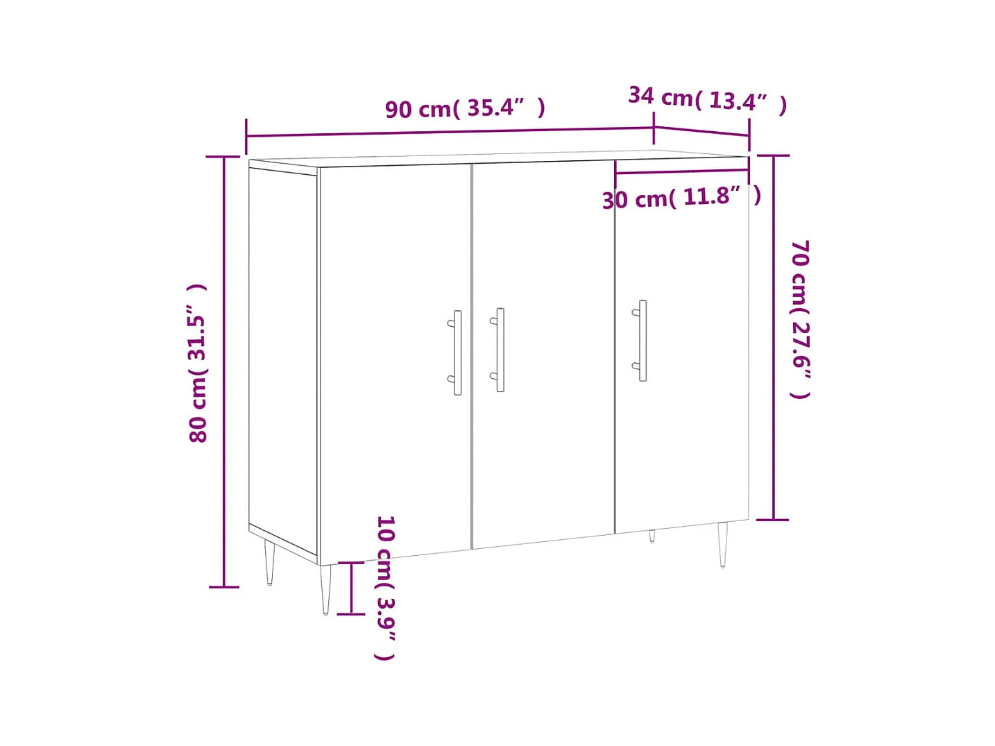 Dressoir 90x34x80 cm bewerkt hout sonoma eikenkleurig