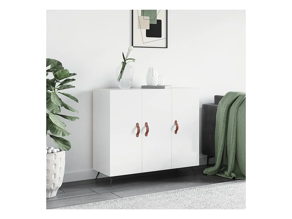 Dressoir 90x34x80 cm bewerkt hout hoogglans wit