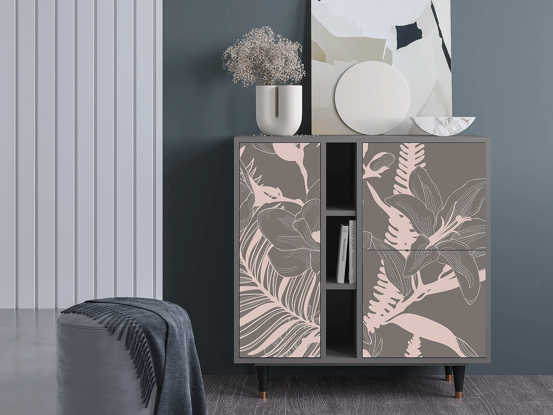 Dressoir - 94х96х41 cm - BS5 - Issabelline Flower, Grijs