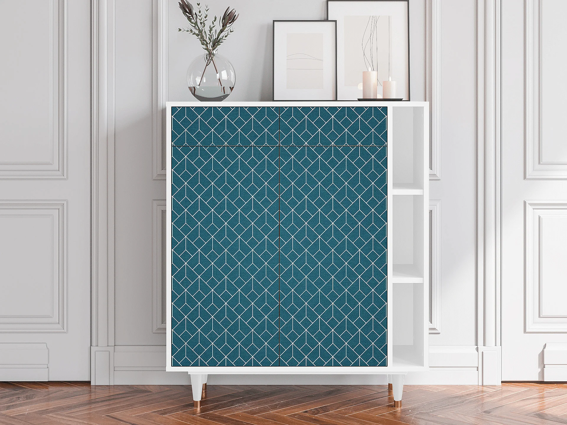 Dressoir - 96х110х41 cm - BS6 - Turquoise Geometry, Wit