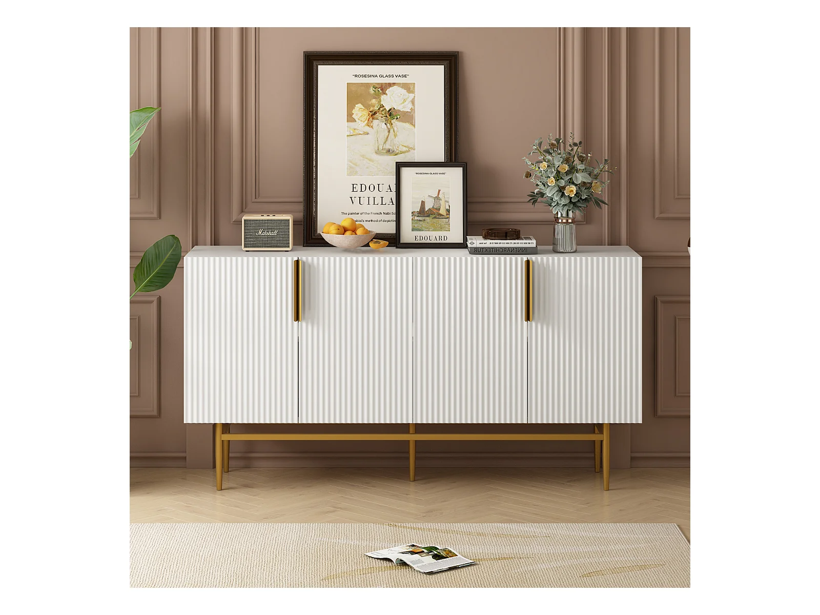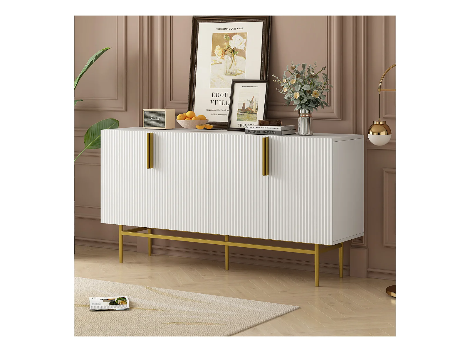 Dressoir - DREAMMESPACE - 4 deuren - gouden metalen handgreep en voet - 152x40x80cm - Wit