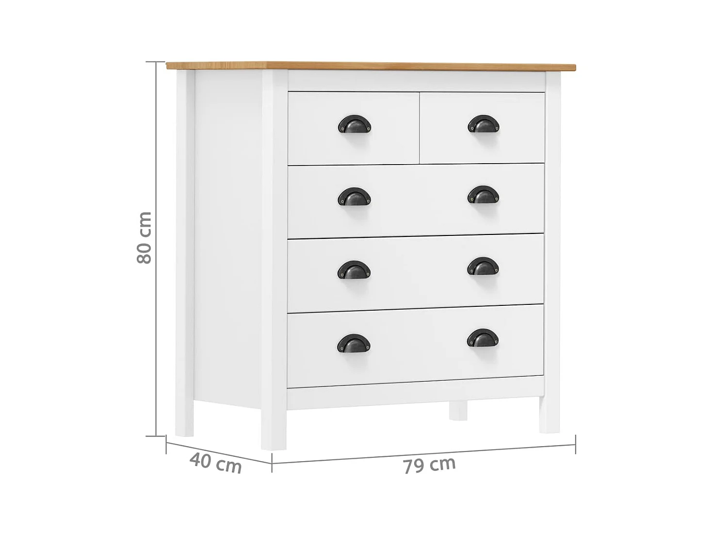 Dressoir Hill 79x40x80 cm massief grenenhout wit