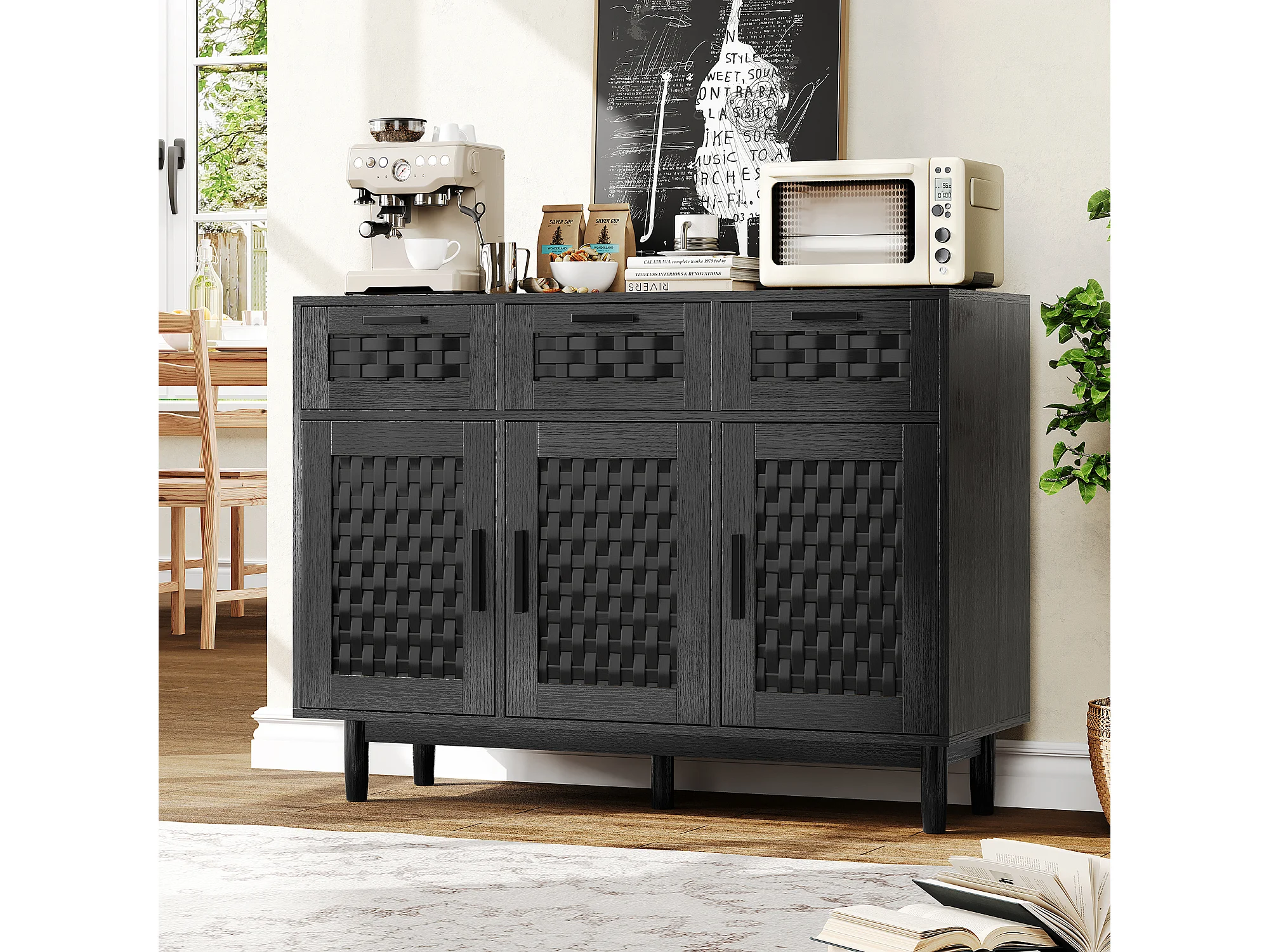 Dressoir met 3 lades en 3 deuren – hout – 107,9 x 40 x 80 cm – Geschikt voor keuken en woonkamer – zwart