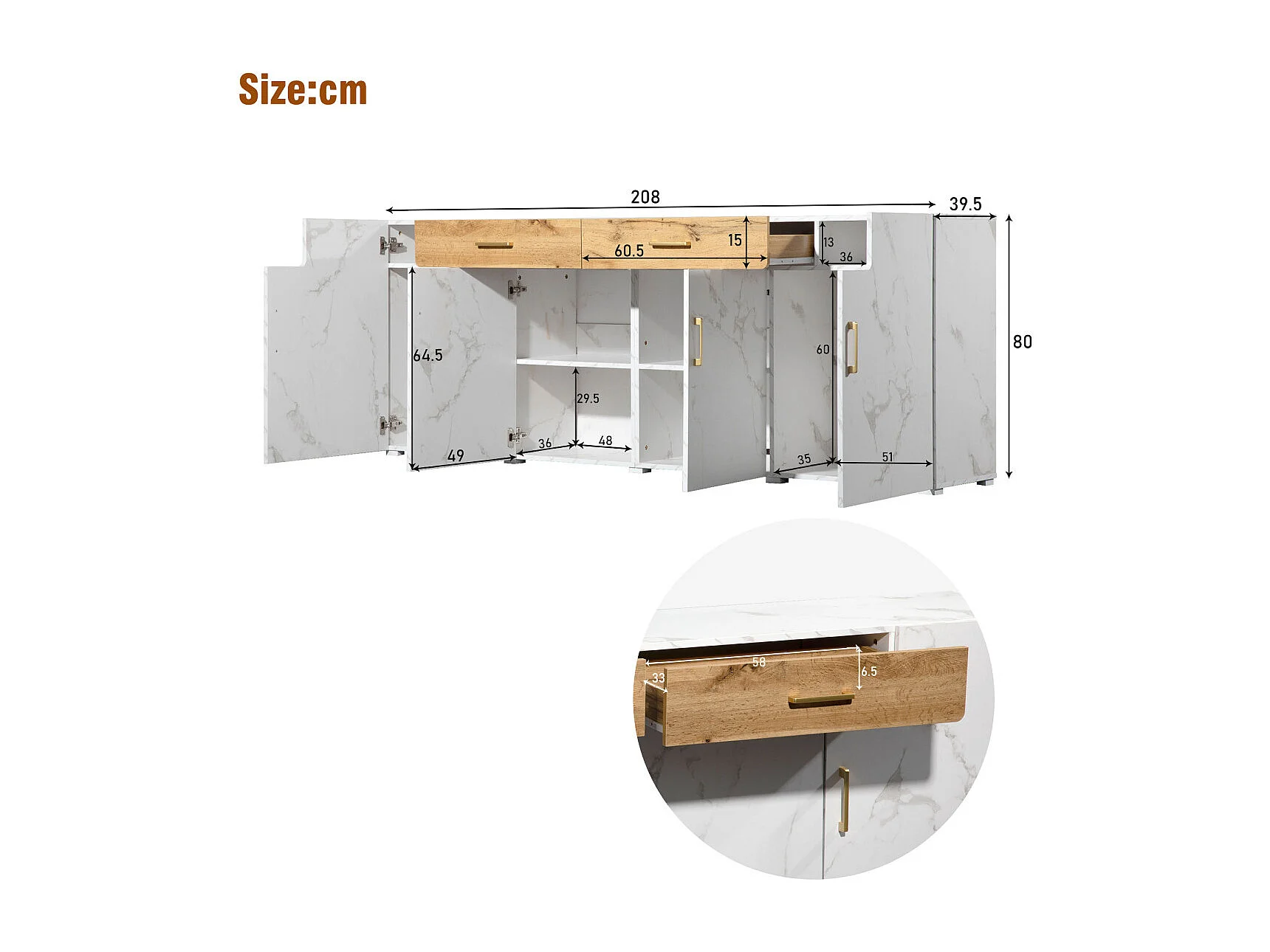 Dressoir met 4 deuren en 2 laden, 208 x 39,5 x 80 cm.
