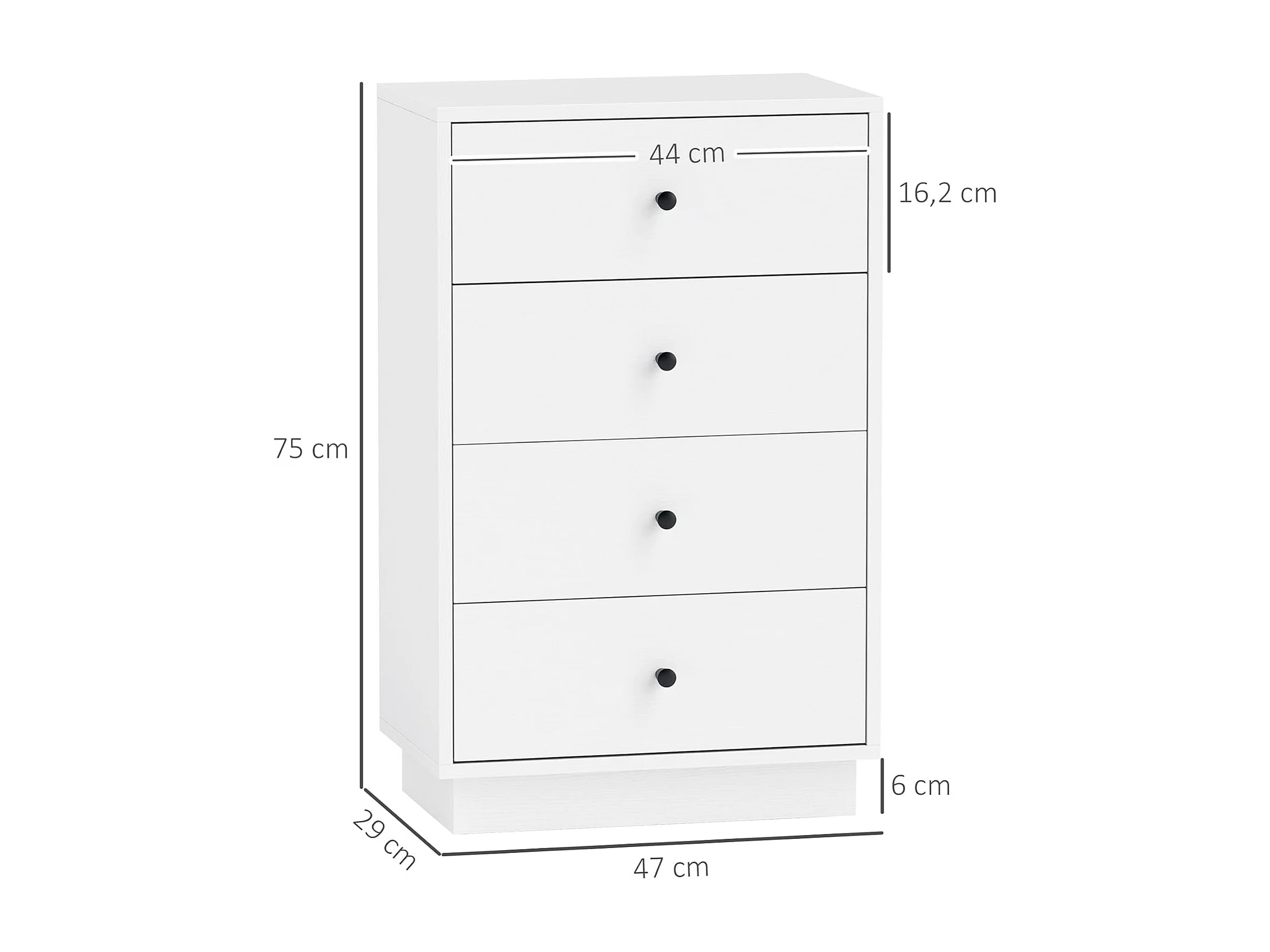 Dressoir met 4 lades, commode voor woonkamer, slaapkamer, gang, 47 x 29 x 75 cm, wit
