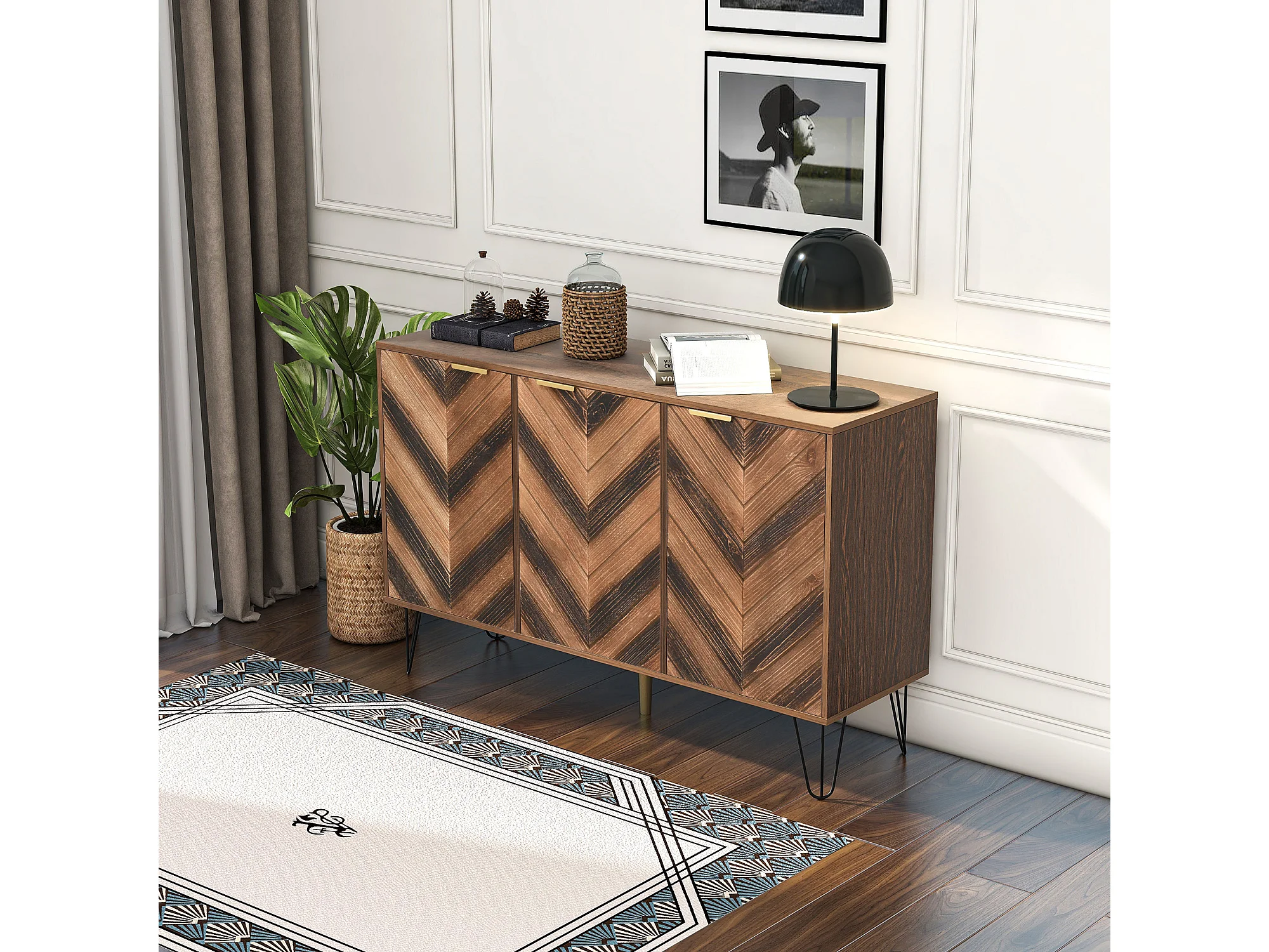 Dressoir met drie deuren - Concaaf en convex patroon - Donker naturel en zwart