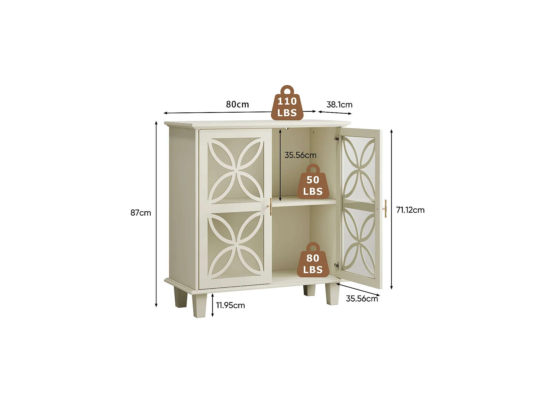 Dressoir met glazen deuren, moderne retro opbergkast, crème