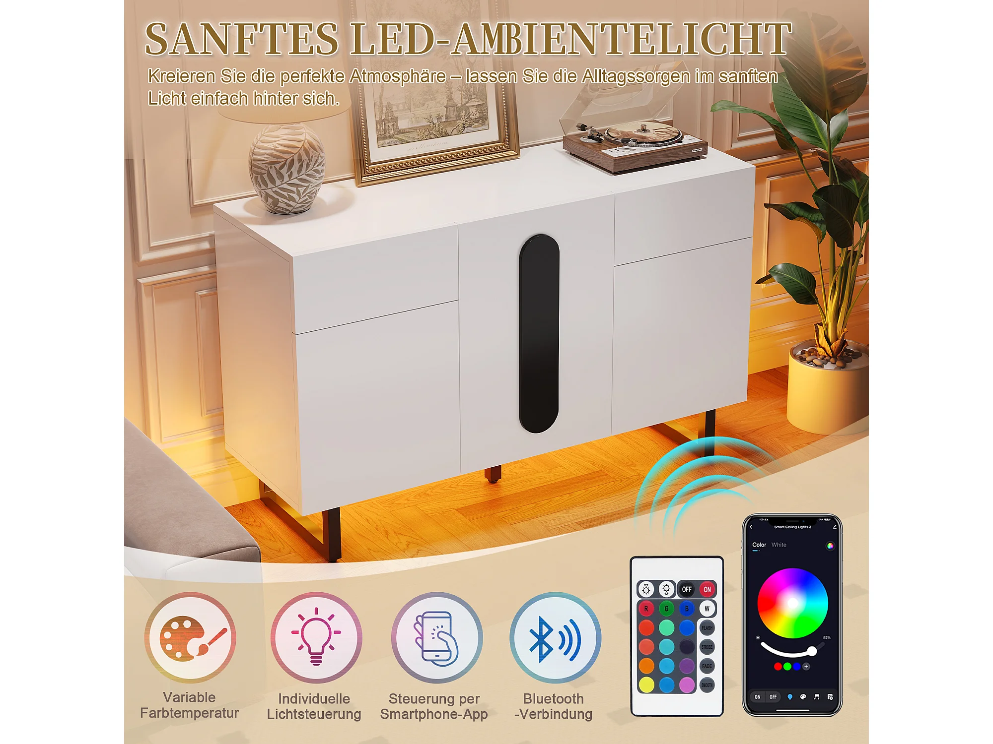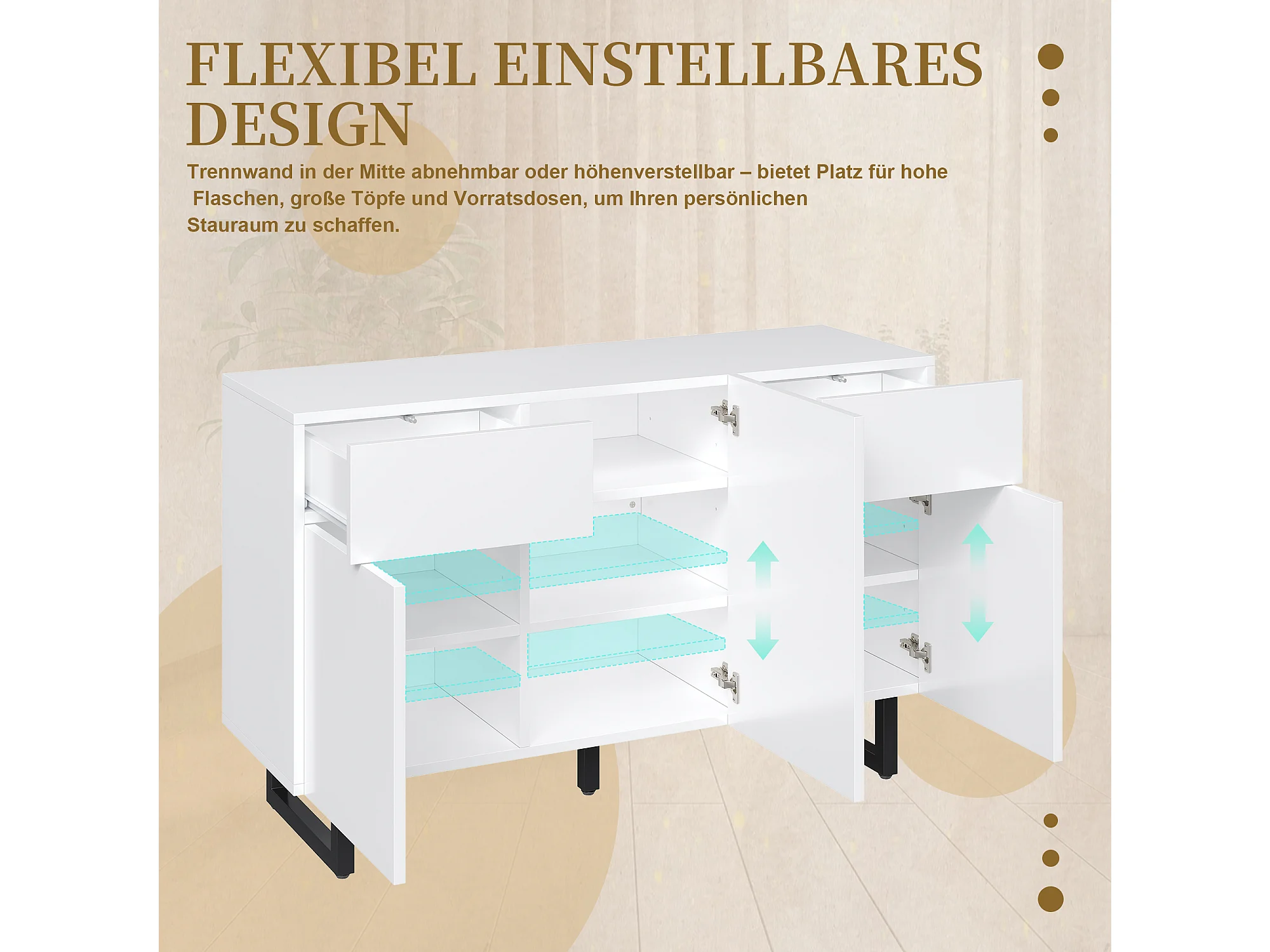 Dressoir met lades en deuren, bewerkt hout, wit (120x40,5x75cm)