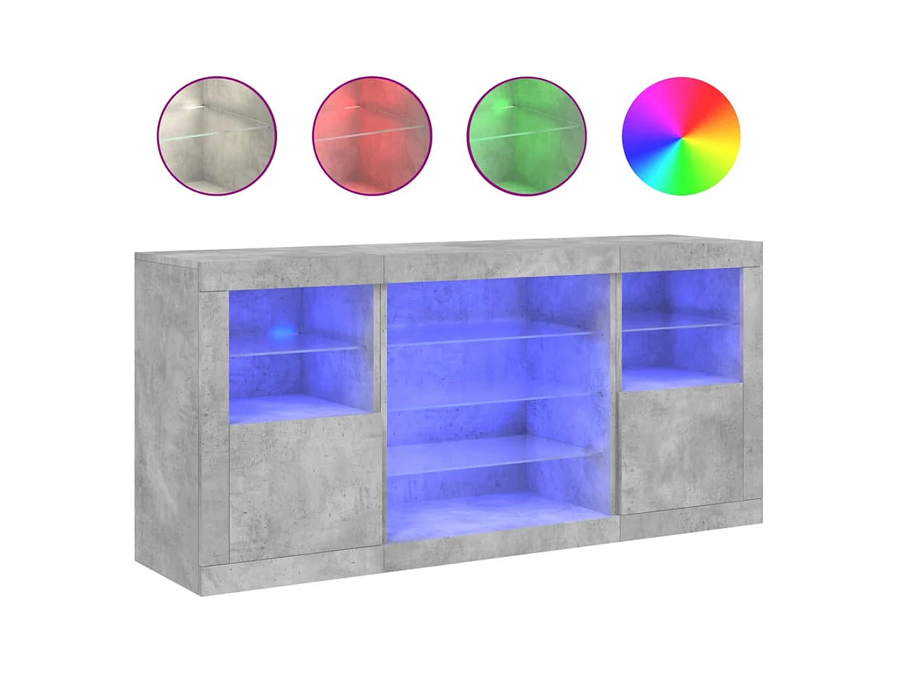 Dressoir met LED-verlichting 142,5x37x67 cm betongrijs