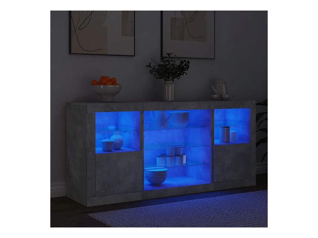 Dressoirs met LED-verlichting 3 st bewerkt hout grijs sonoma