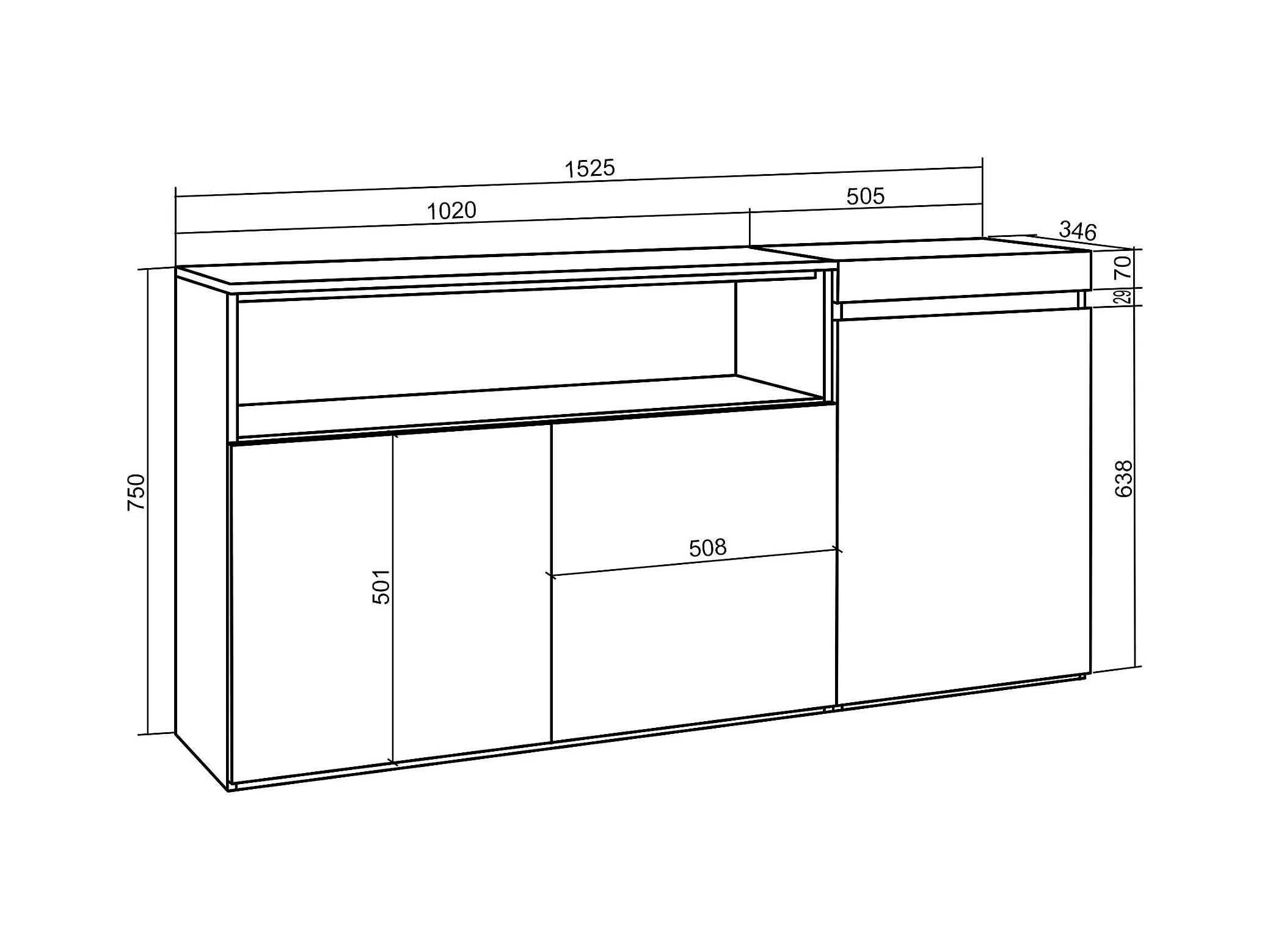 Dressoir, Opbergkast, 150x35x87cm, 3 Deuren, Industrieel design, Eiken/Zwart
