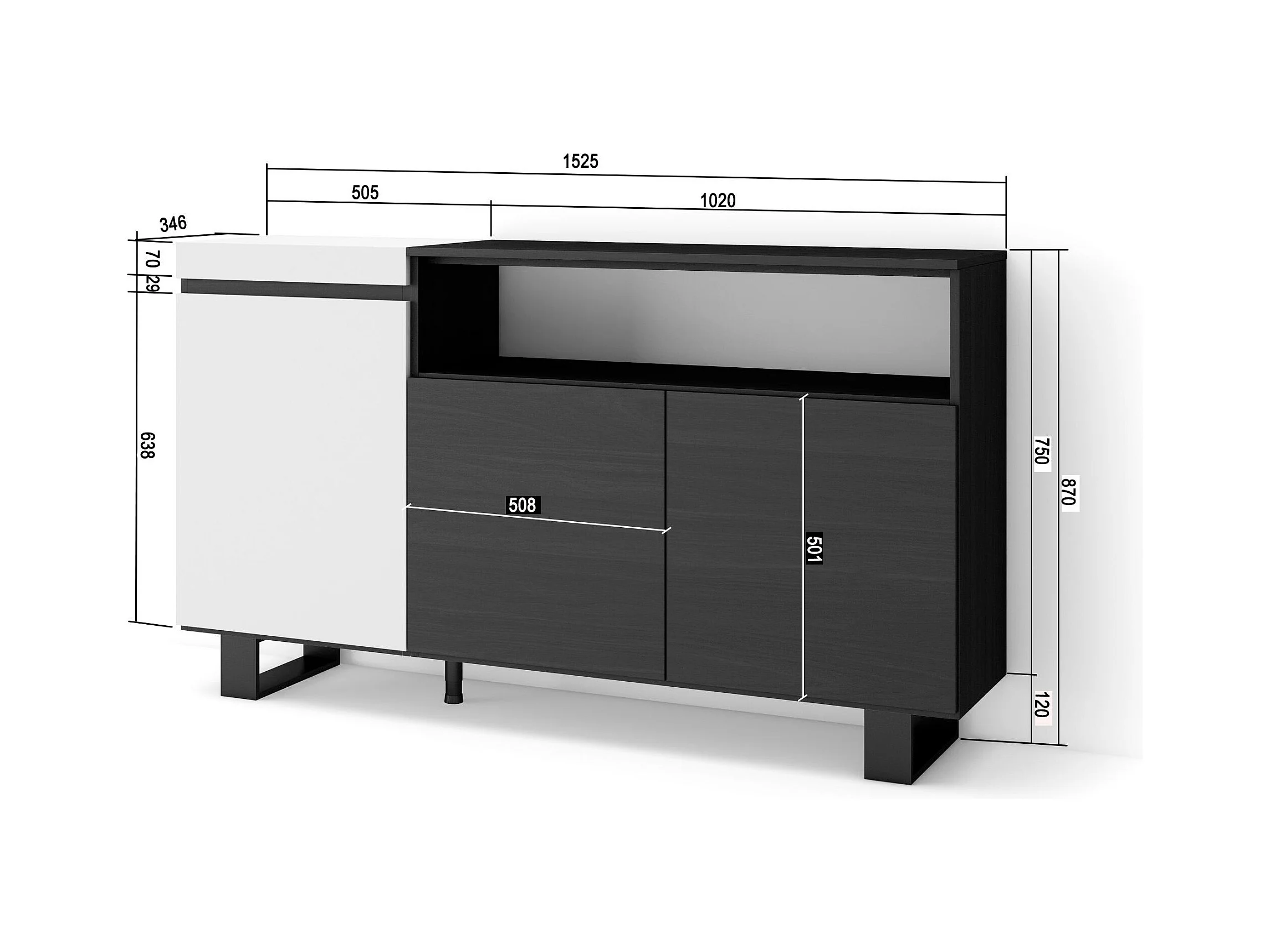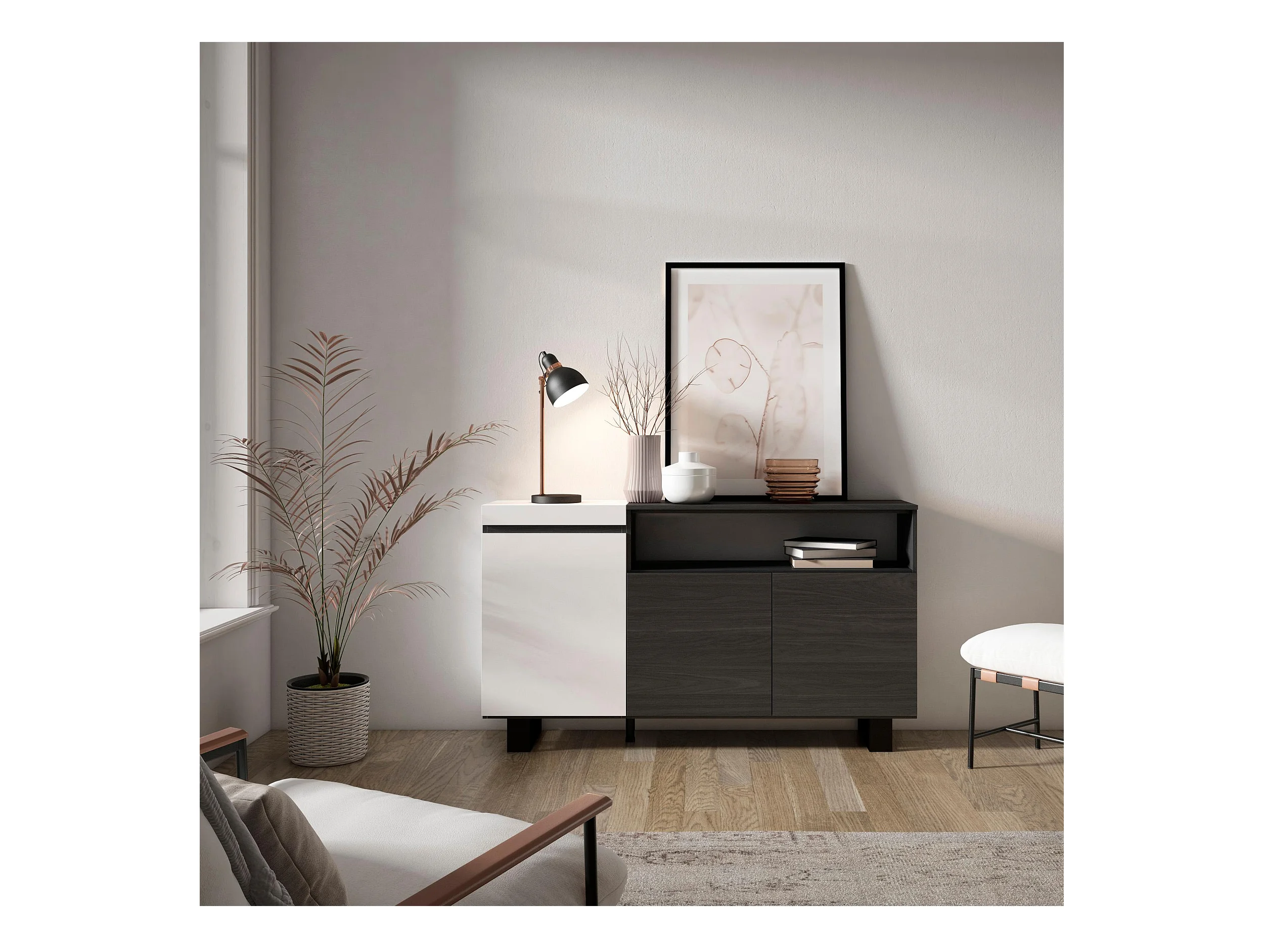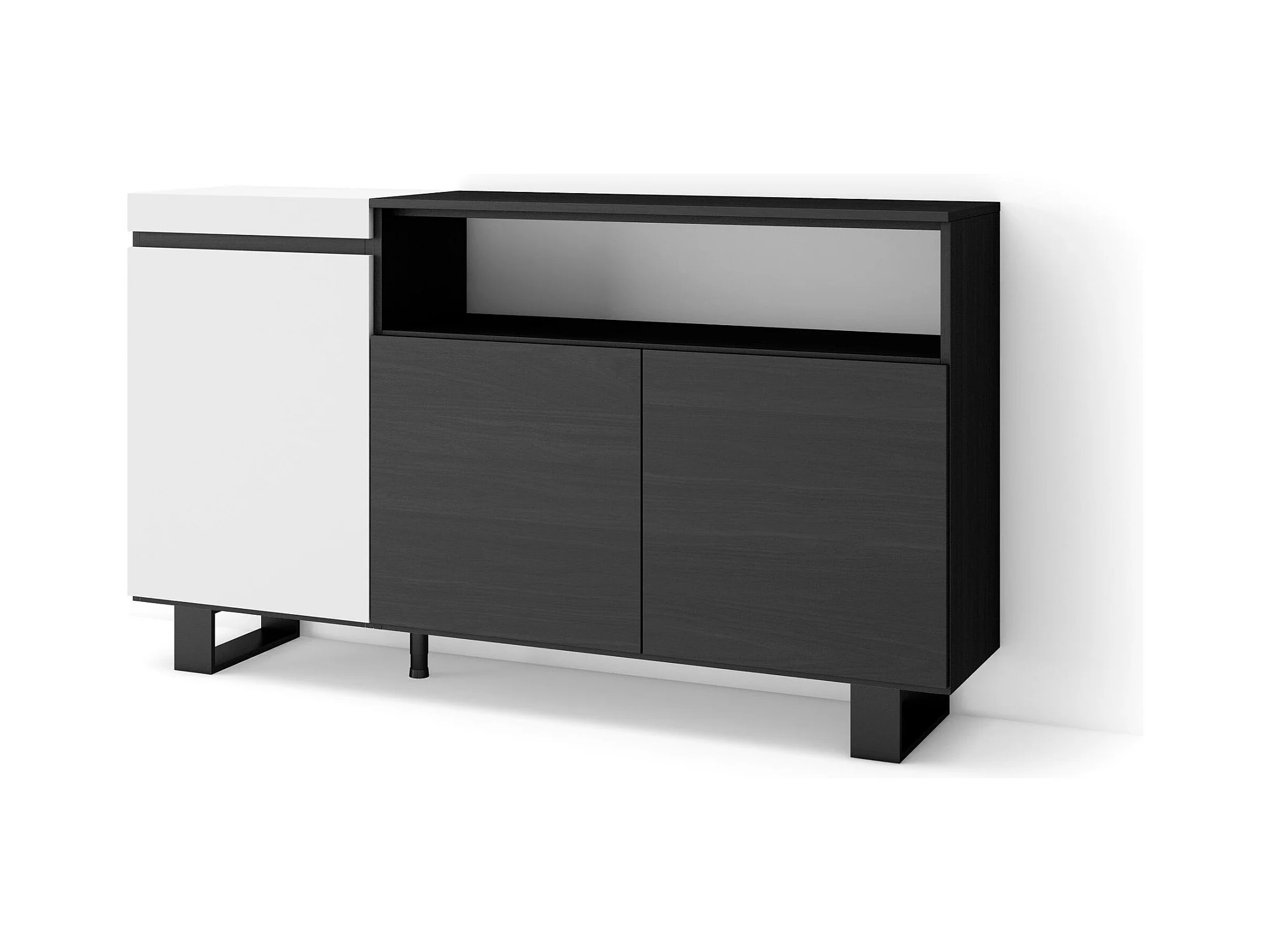 Dressoir, Opbergkast, 150x35x87cm, 3 Deuren, Industrieel design, Wit en Zwart