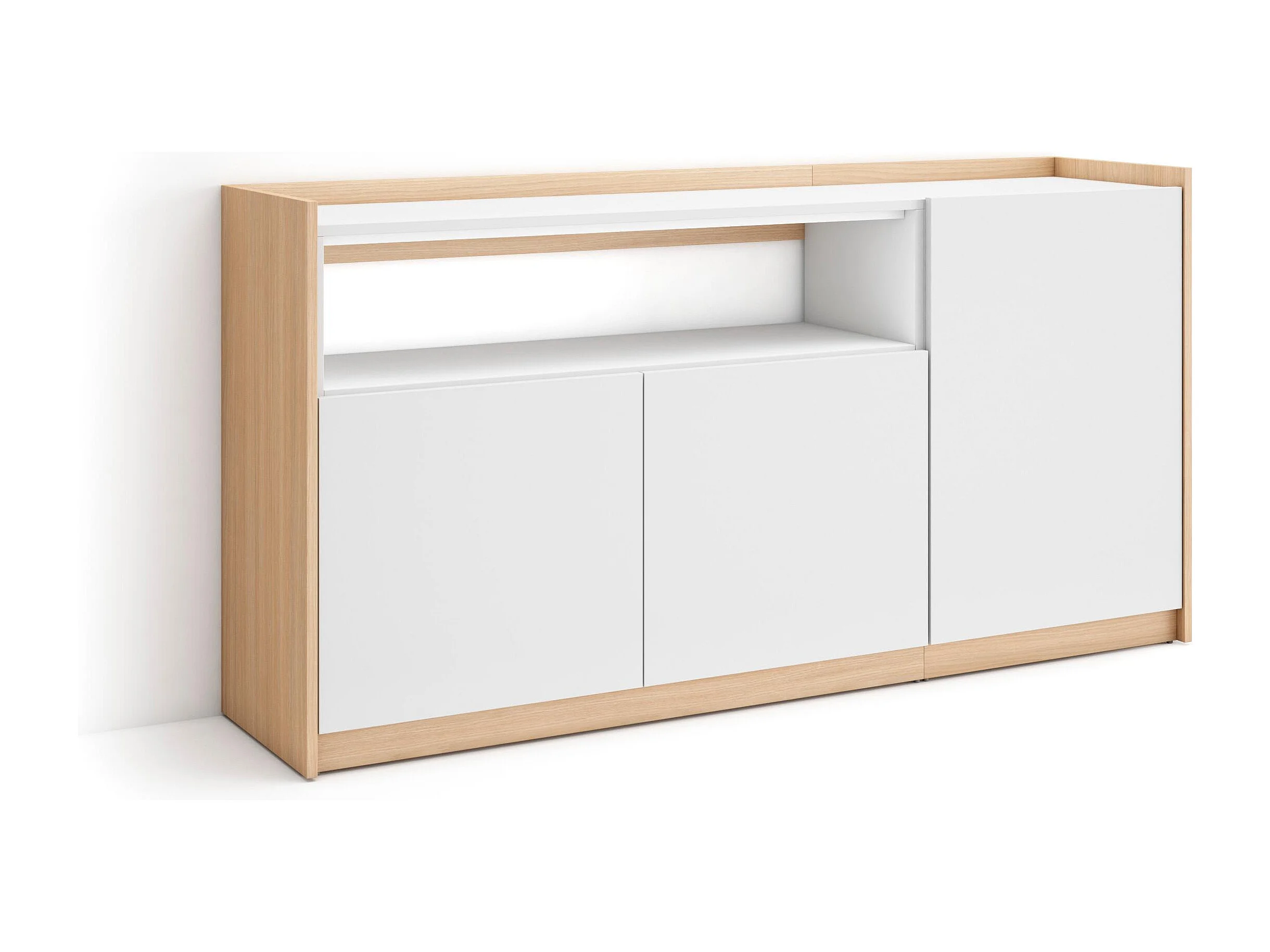Dressoir, Opbergkast, 156x80x37 cm, 3 Deuren, Woonkamer, hal, Wit en Eiken soft