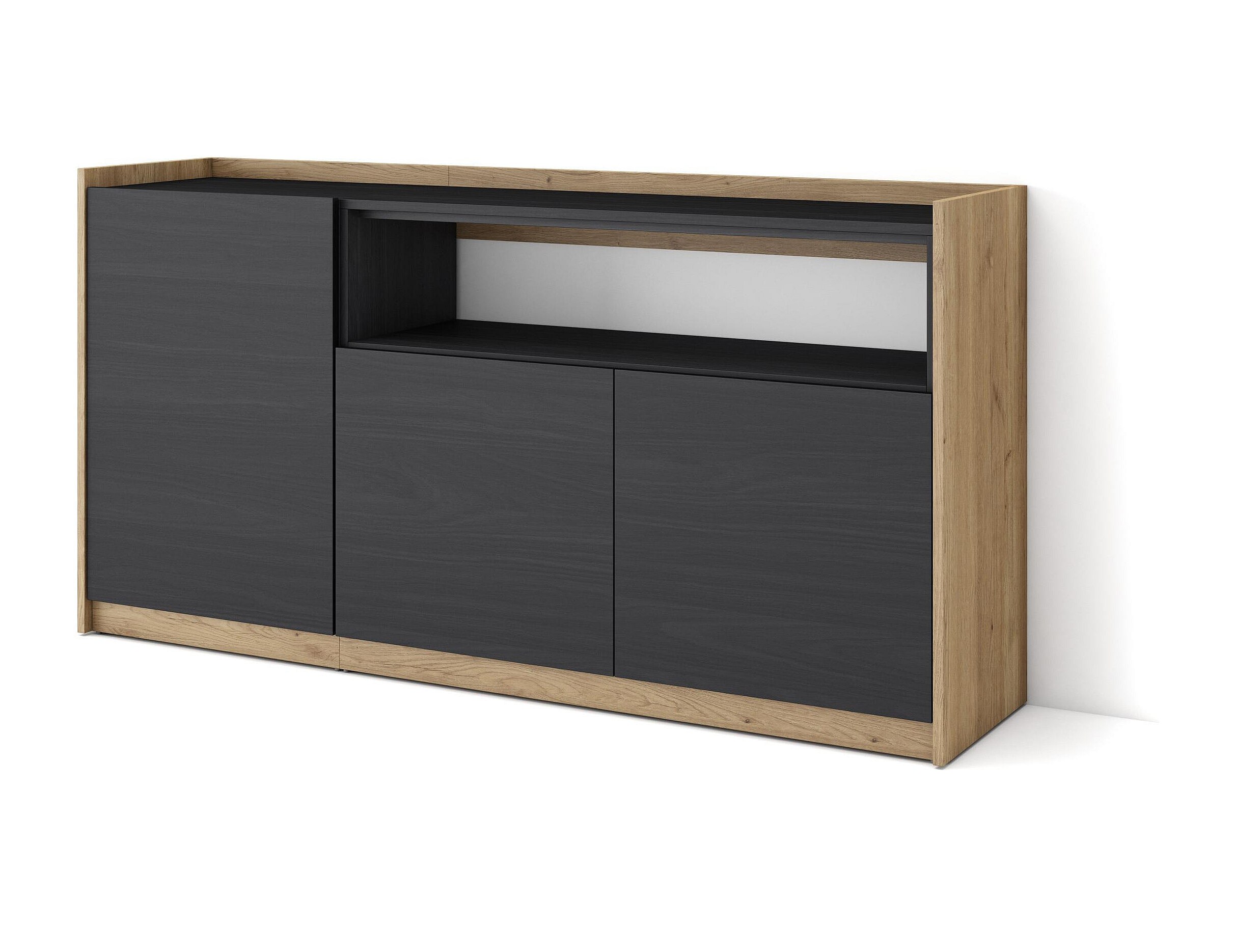 Dressoir, Opbergkast, 156x80x37 cm, 3 Deuren, Woonkamer, hal, Zwart/Eiken