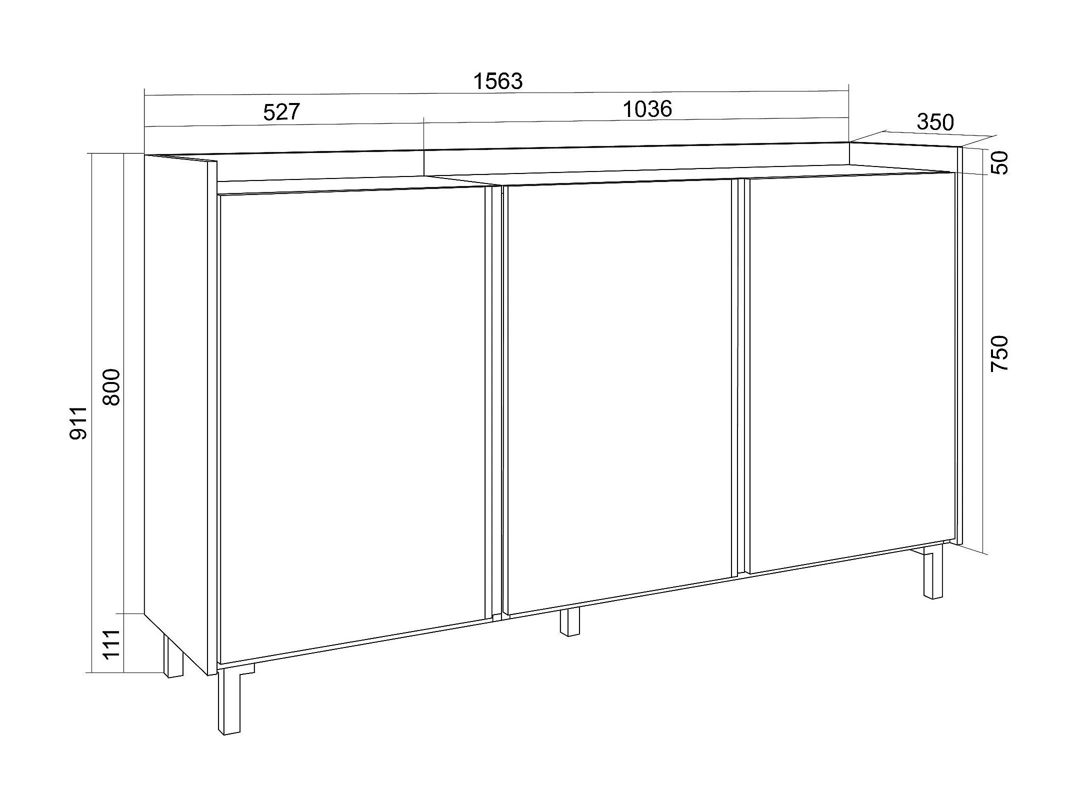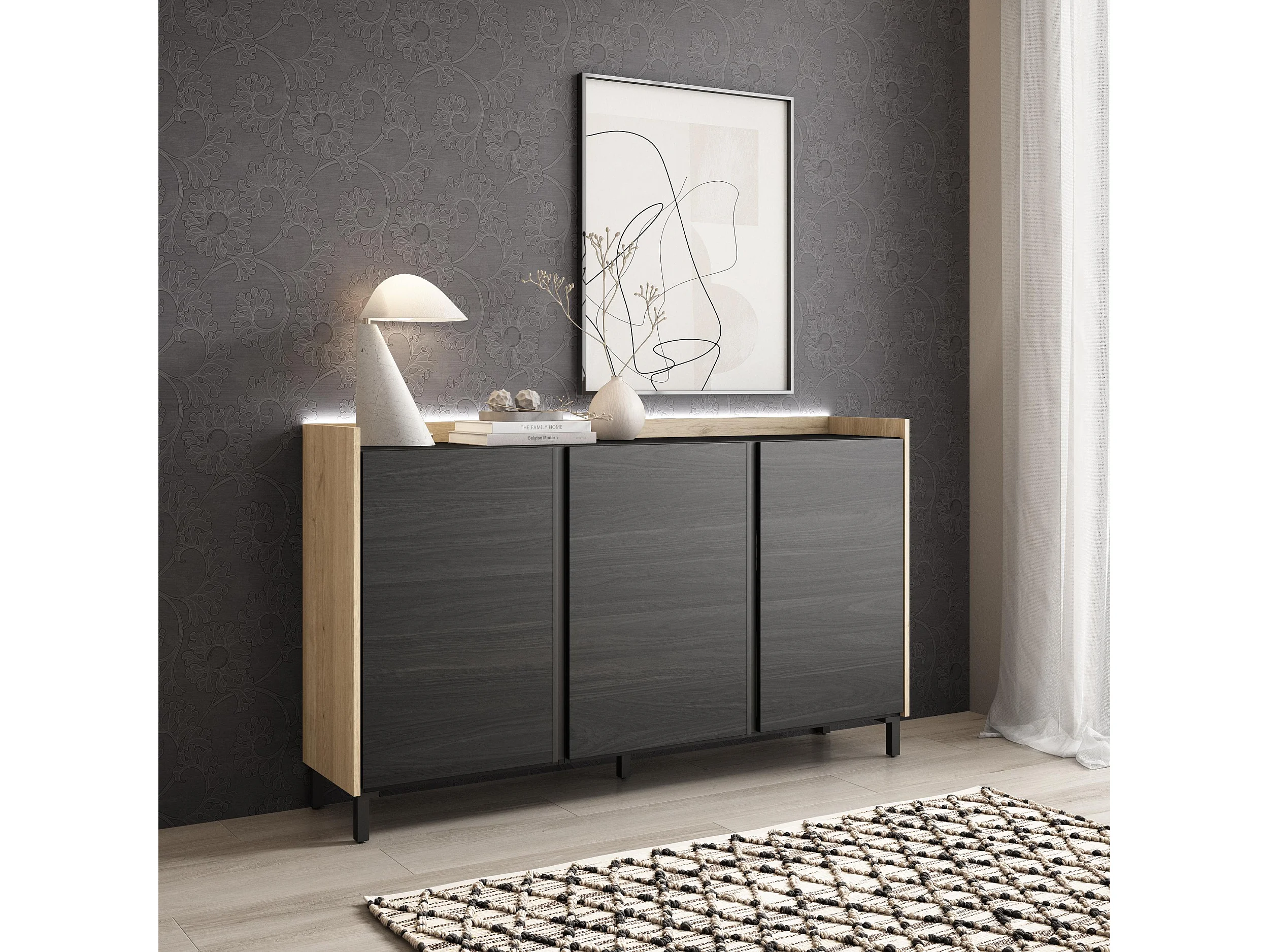 Dressoir, Opbergkast, 156x91x35 cm, 3 Deuren, Industrieel design, LED, Zwart/Eiken