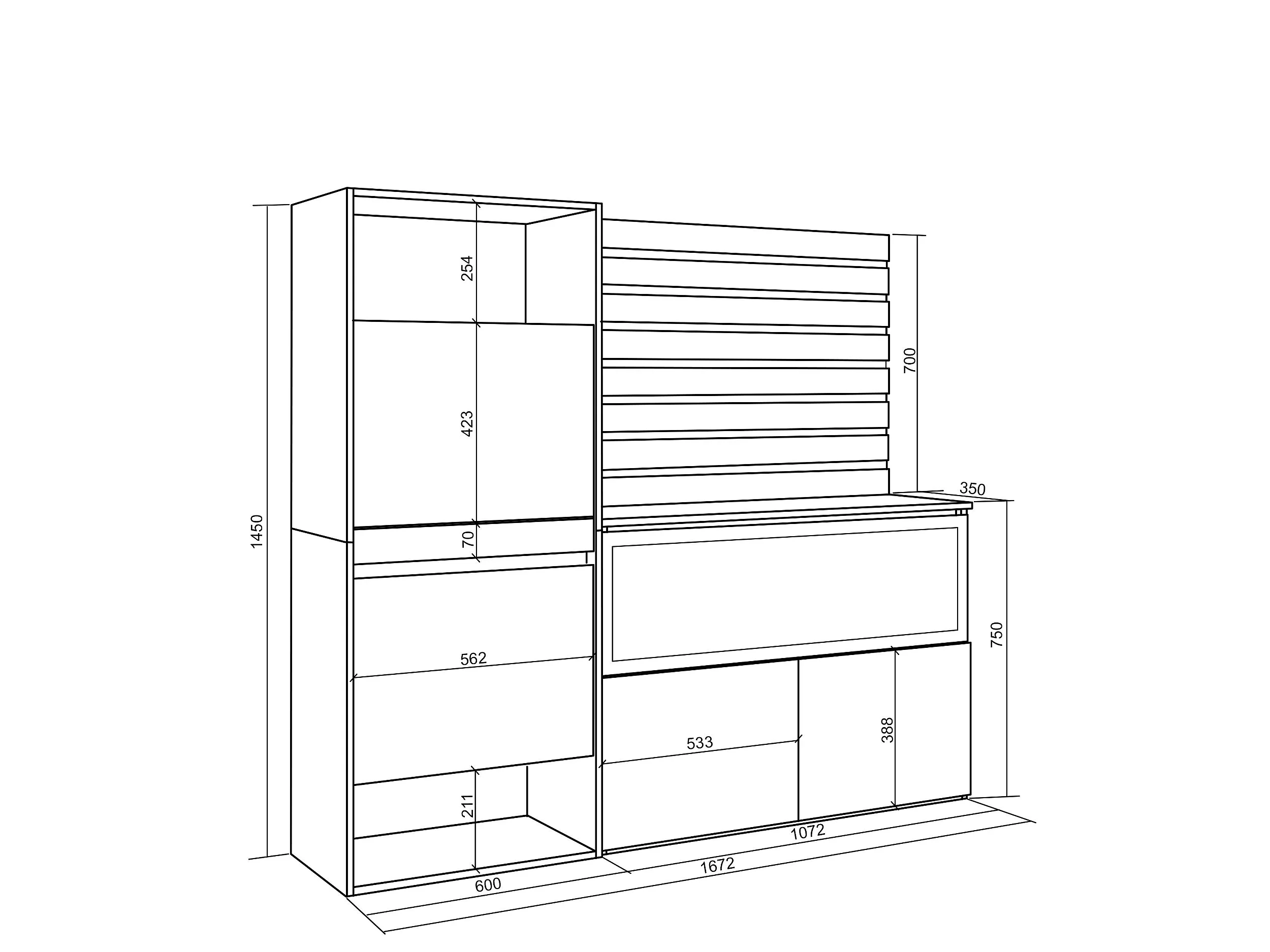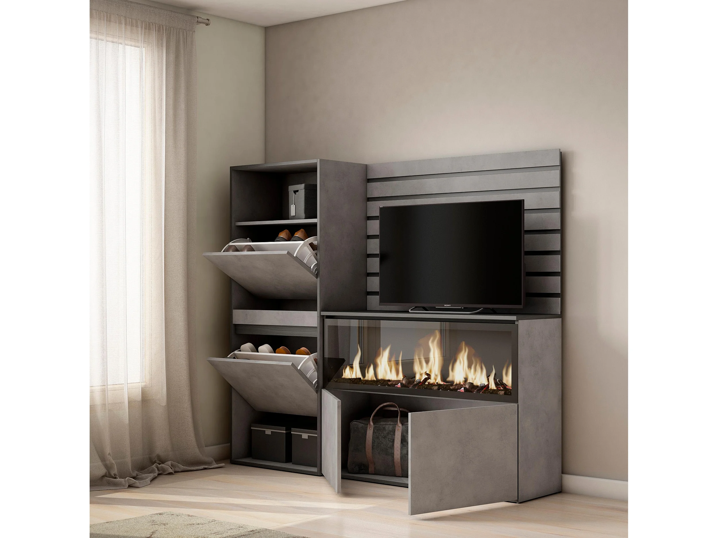 Dressoir, Opbergkast, 167x35x145cm, Voor slaapkamer, kamer, Elektrische haard XXL, Schoenenkast, Cement