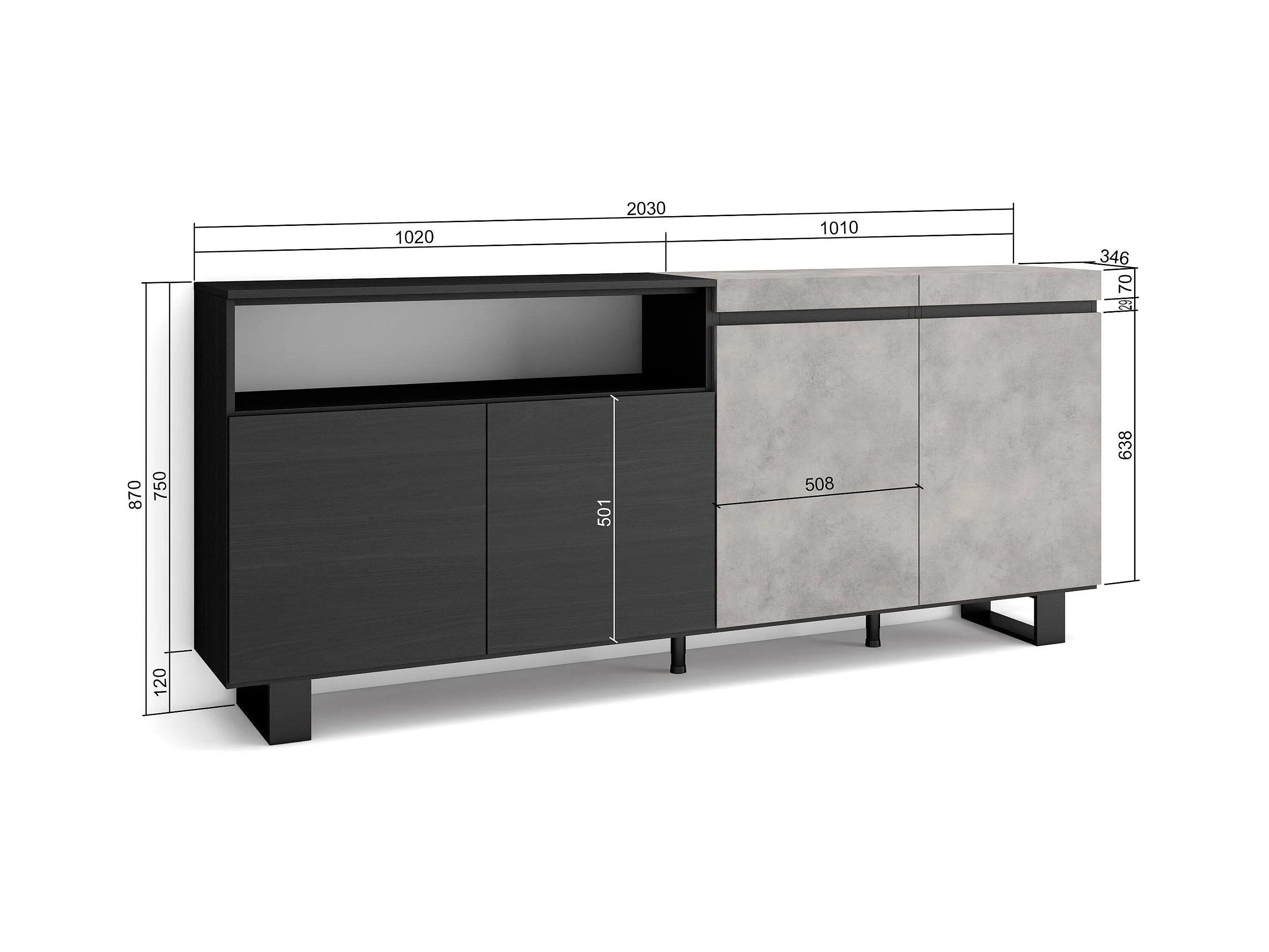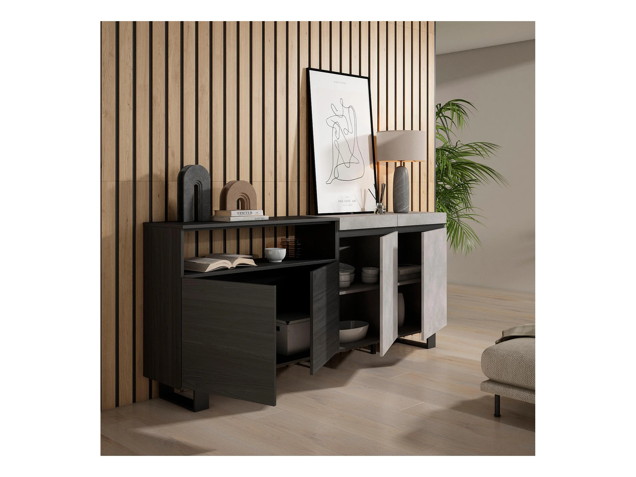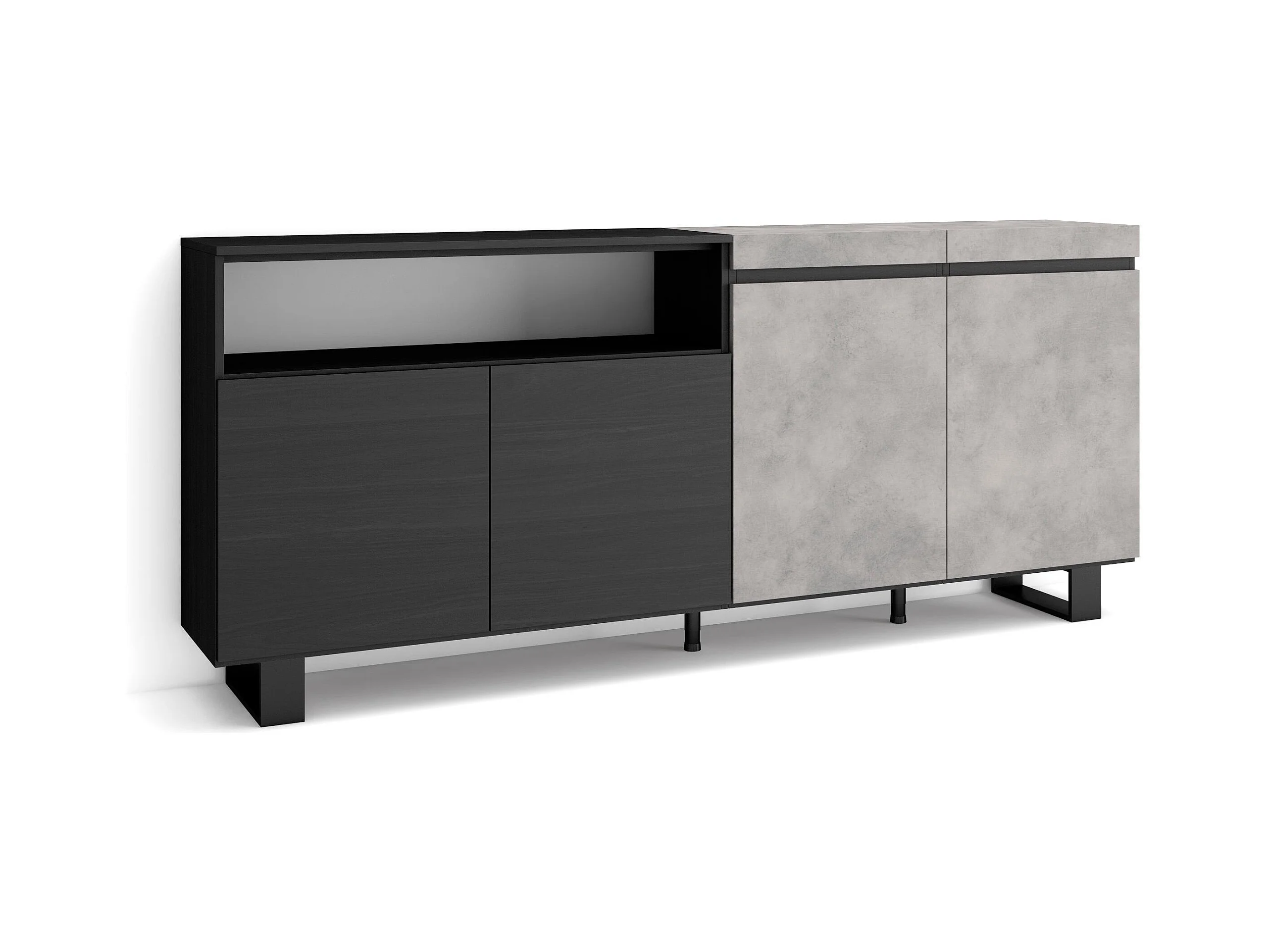 Dressoir, Opbergkast, 200x35x87cm, 4 Deuren, Industrieel design, Cement