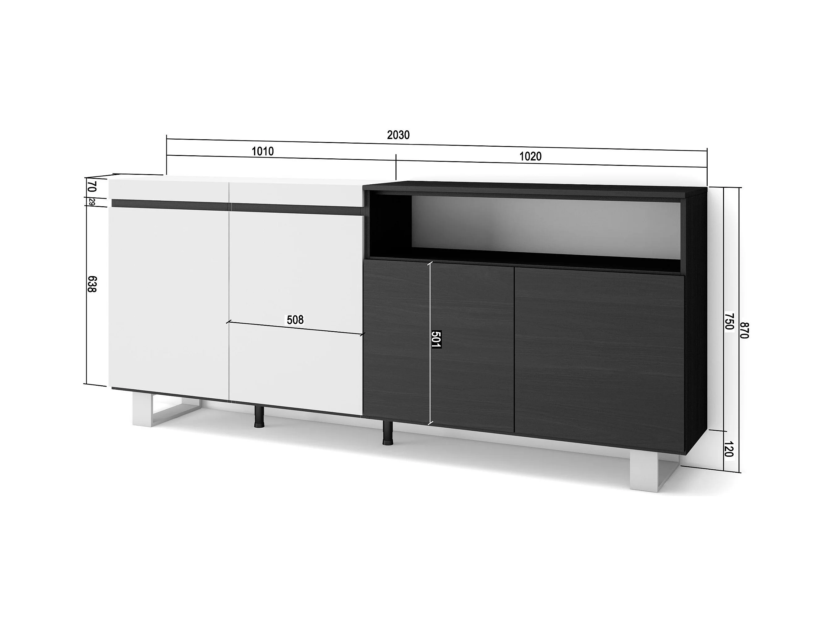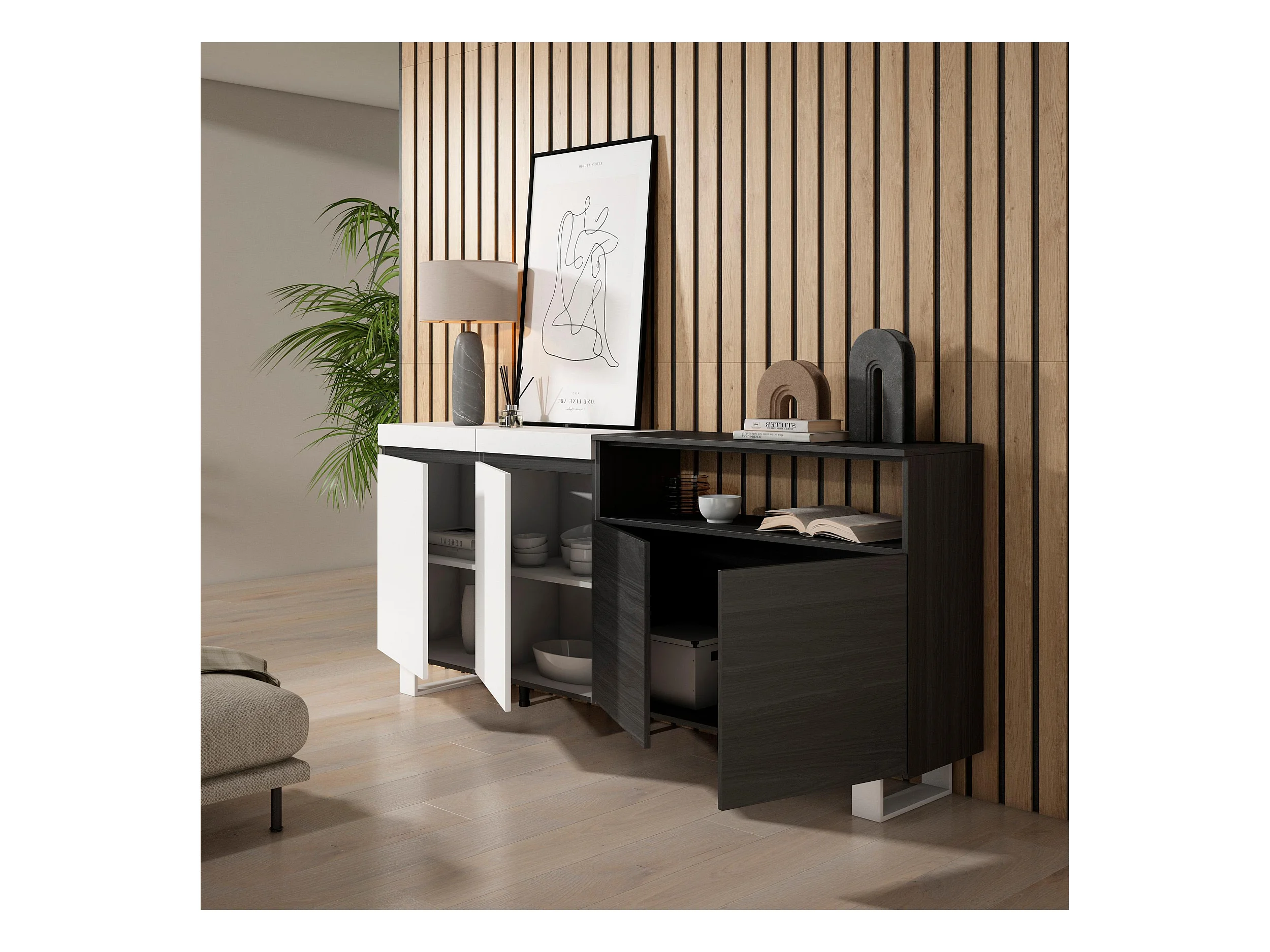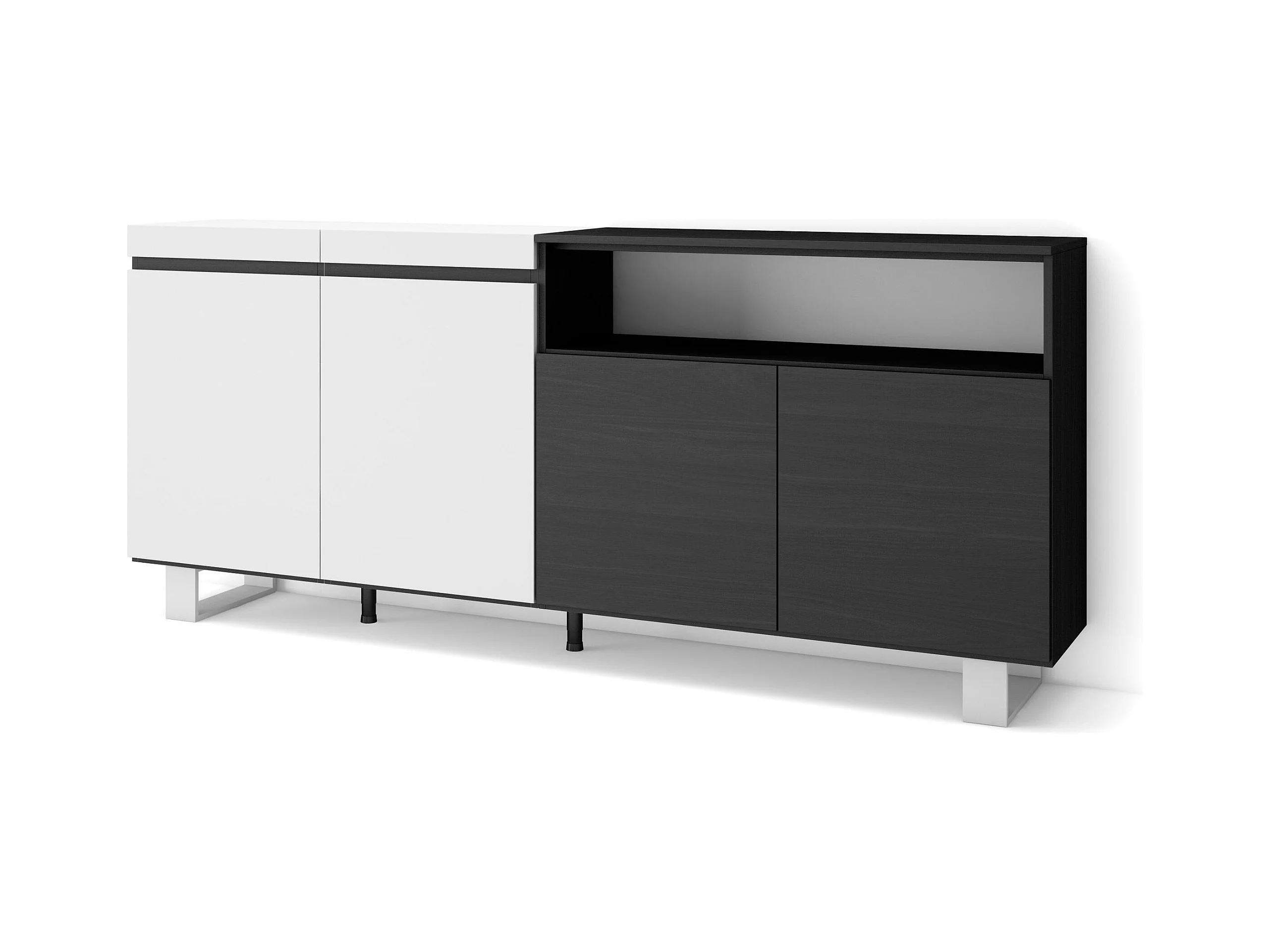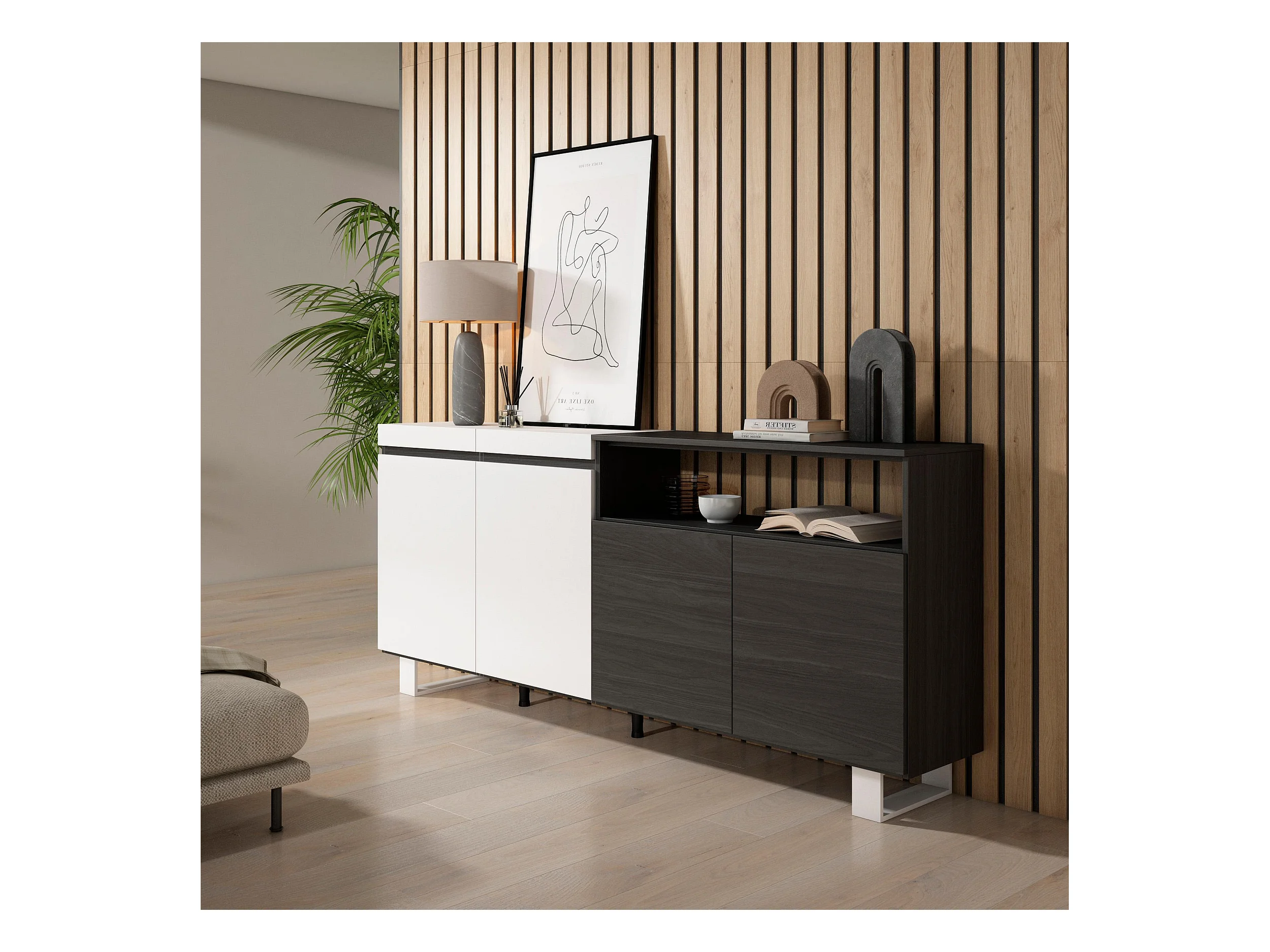 Dressoir, Opbergkast, 200x35x87cm, 4 Deuren, Industrieel design, Wit en Zwart