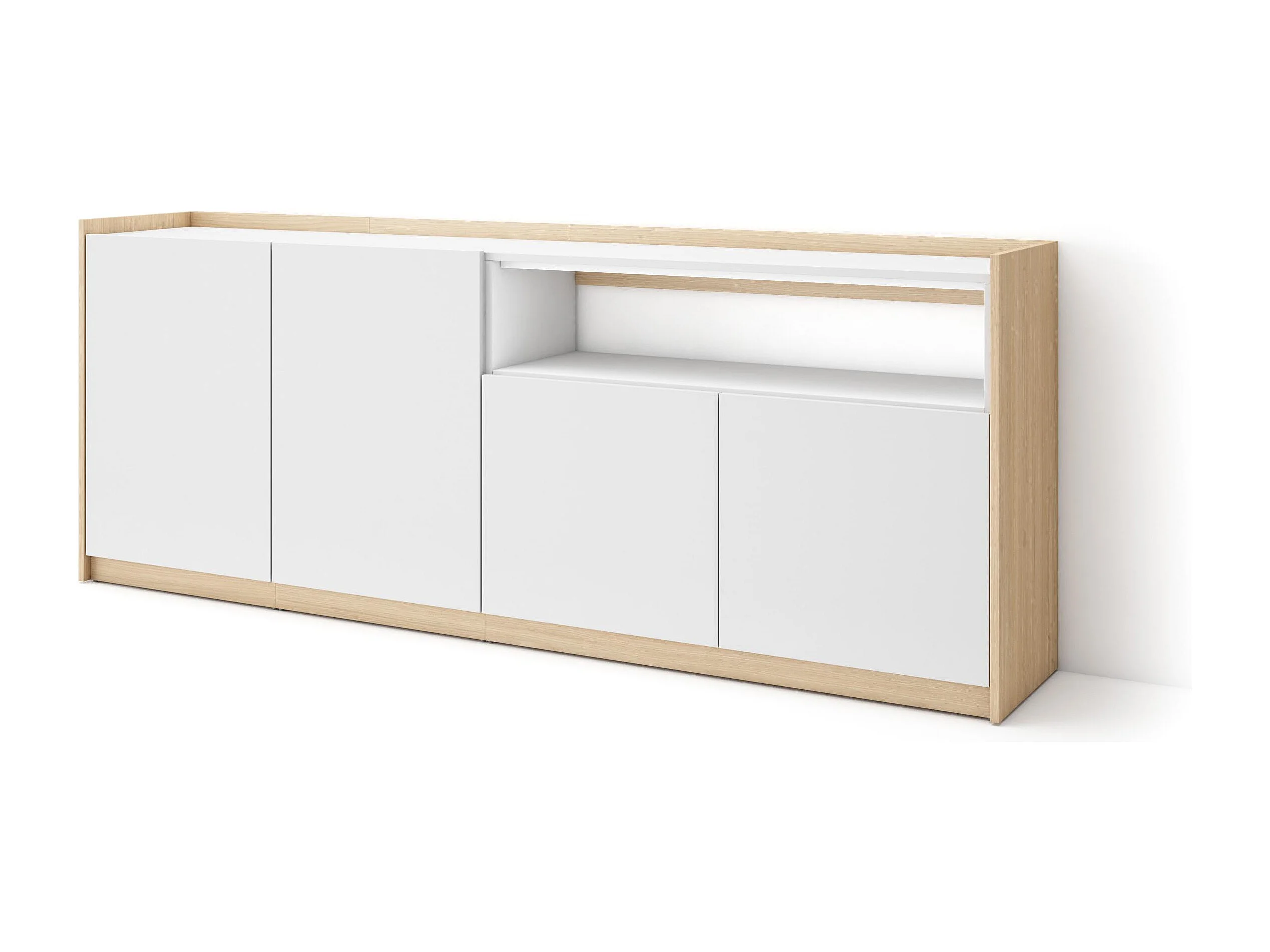 Dressoir, Opbergkast, 207x80x37 cm, 4 Deuren, Woonkamer, hal, Wit en Eiken soft
