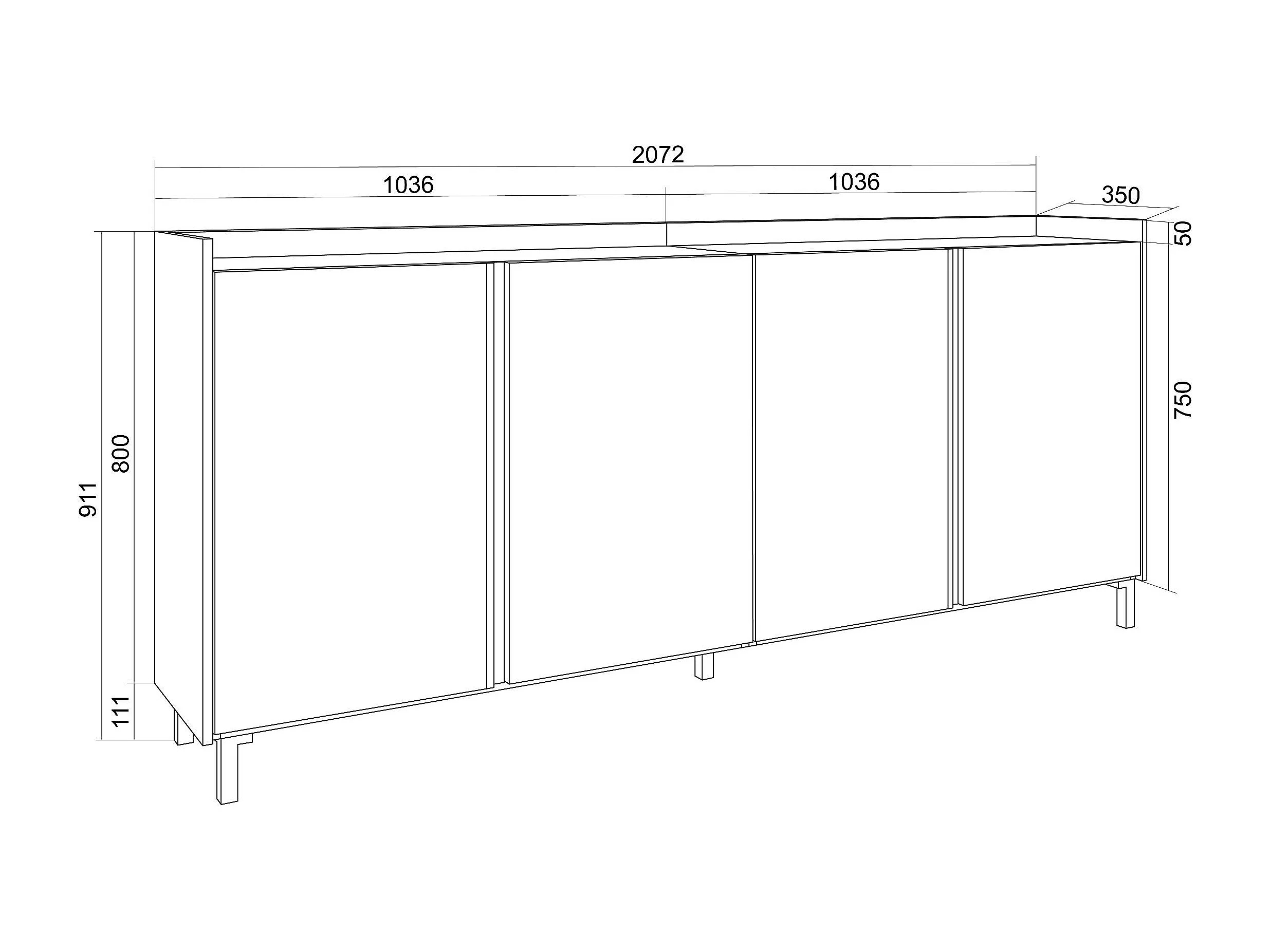 Dressoir, Opbergkast, 207x91x35 cm, 4 Deuren, Industrieel design, LED, Zwart/Eiken