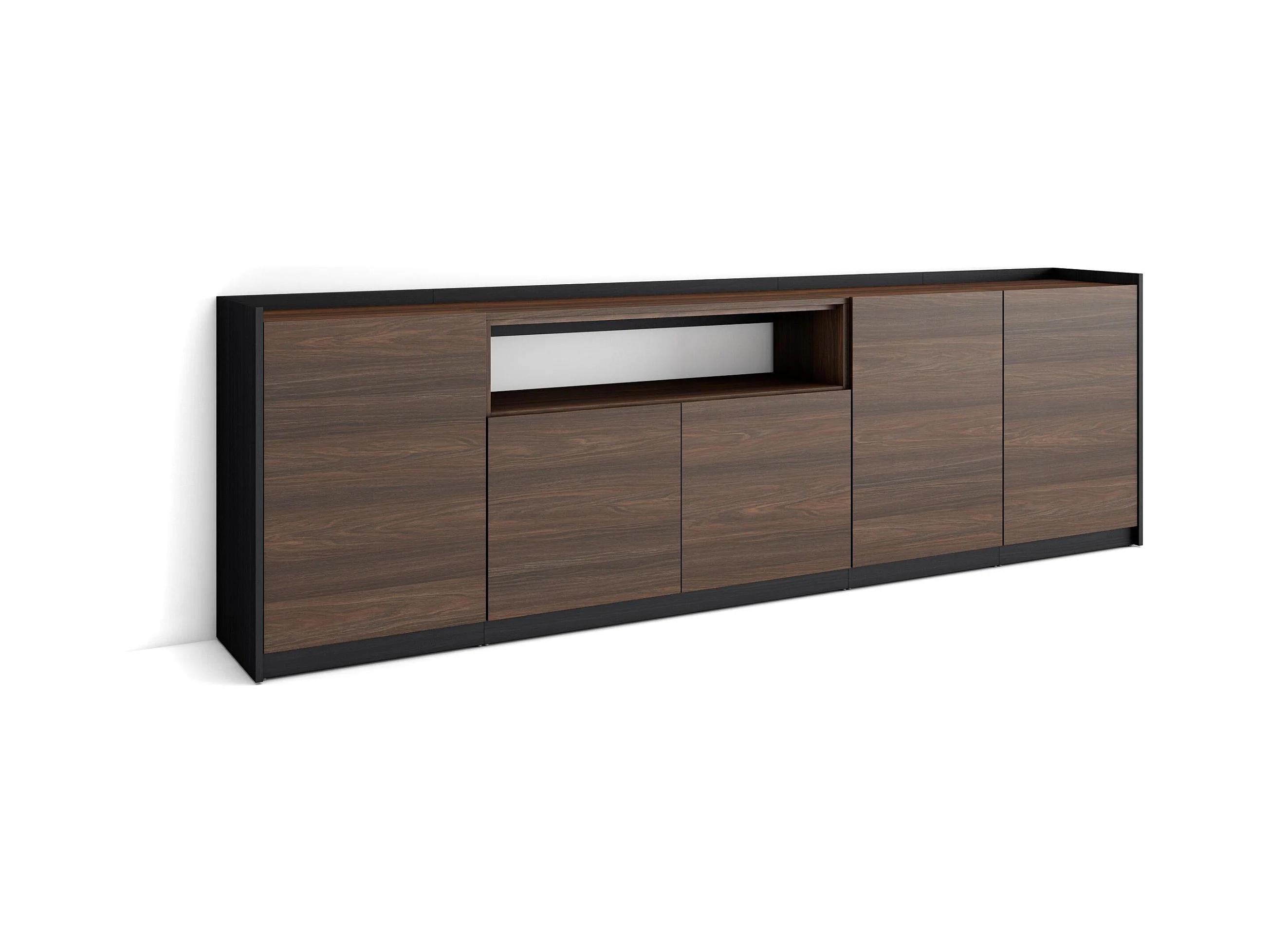 Dressoir, Opbergkast, 260x80x37 cm, 5 Deuren, Woonkamer, hal, Donkere eik en Zwart