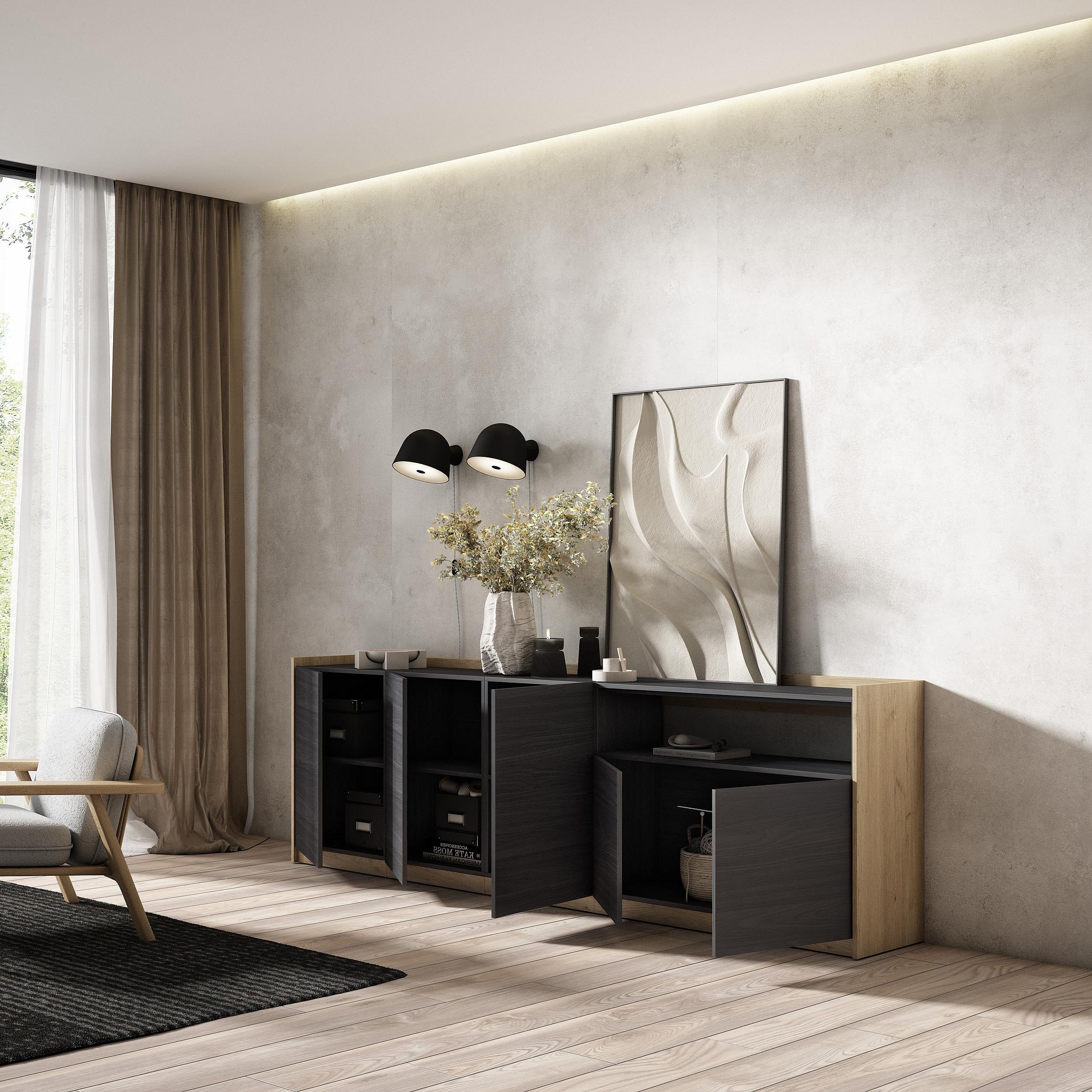 Dressoir, Opbergkast, 260x80x37 cm, 5 Deuren, Woonkamer, hal, Zwart/Eiken