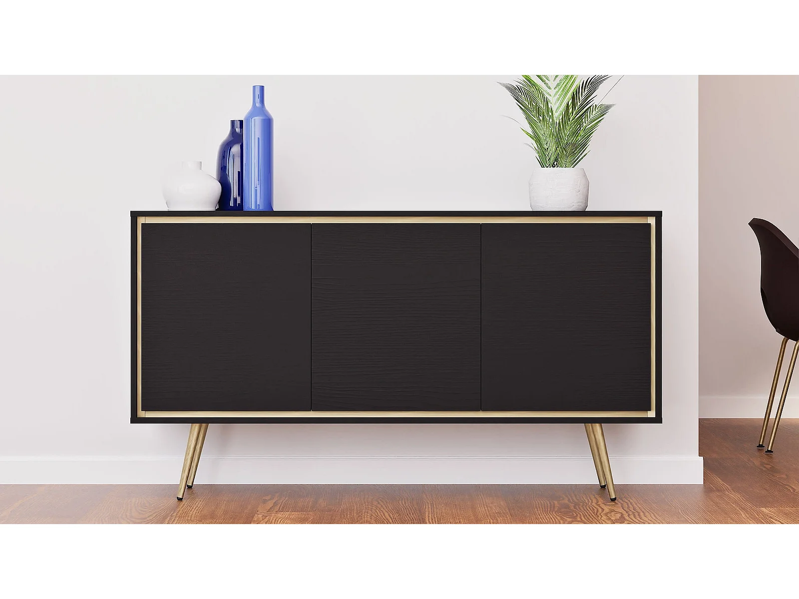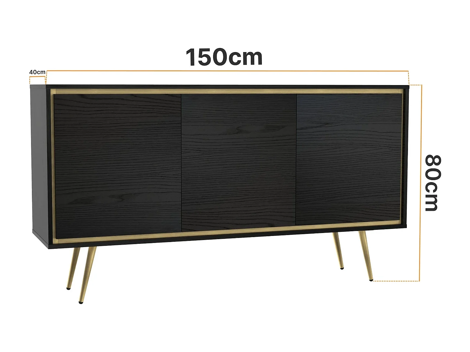 Dressoir Tori 150 cm - Mat zwart met gouden rand
