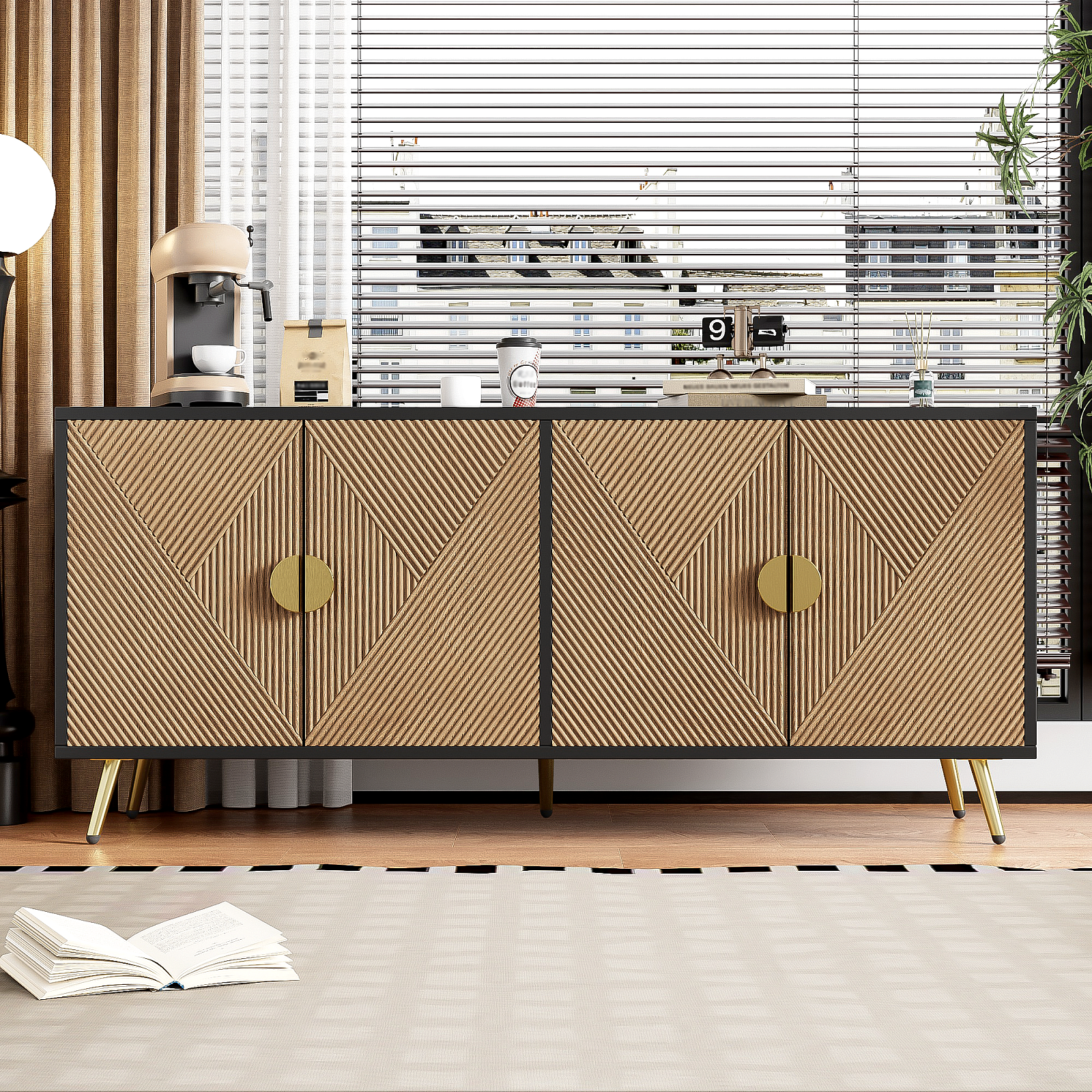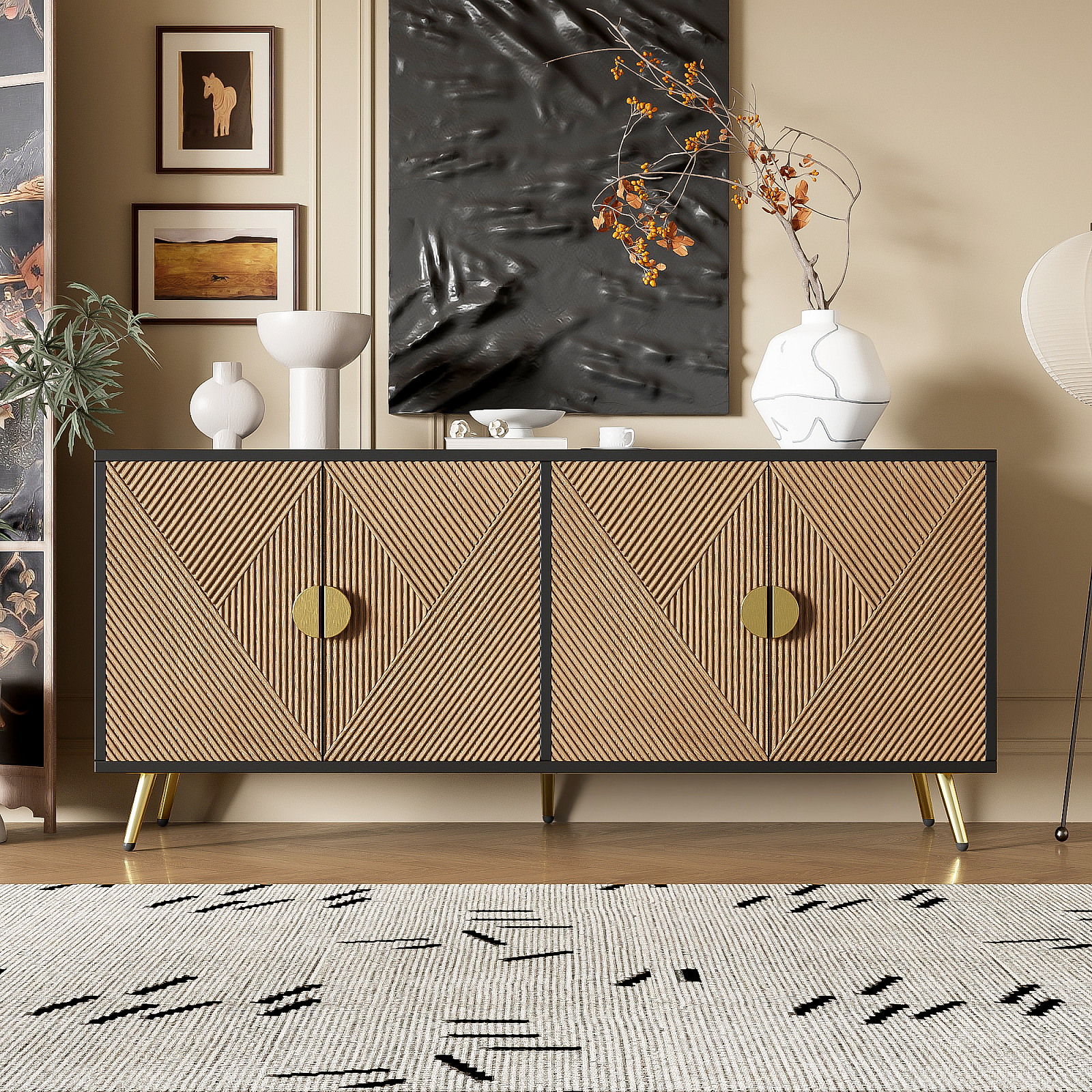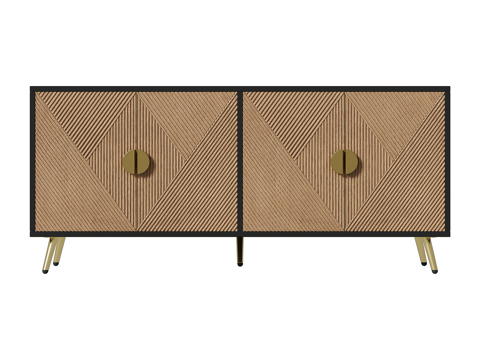 Dressoir van 160 cm met 4 deuren – Geborstelde gouden handgrepen en glanzende poten – Elegante design opbergkast