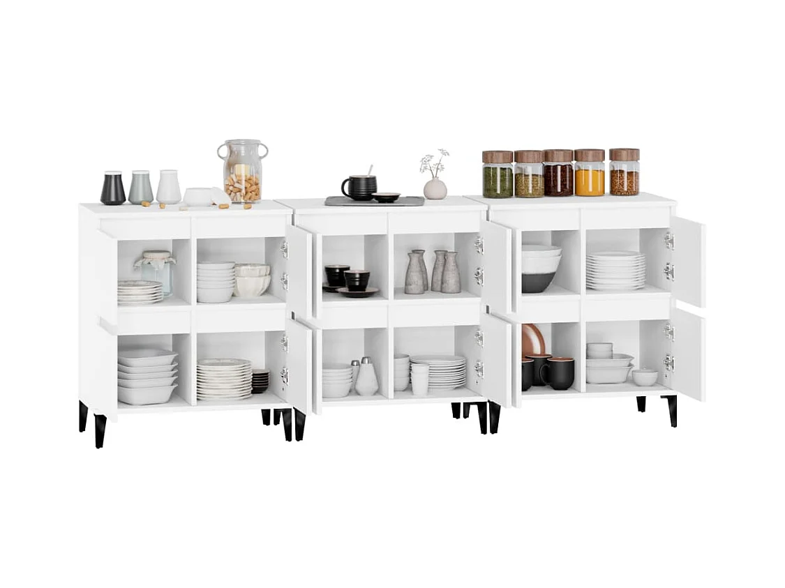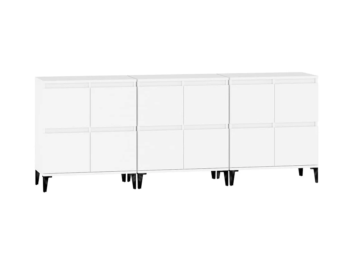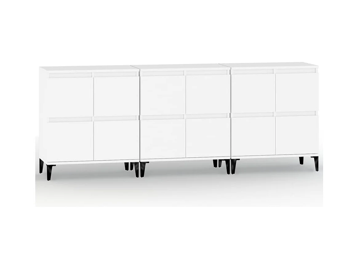 Dressoirs 3 st 60x35x70 cm bewerkt hout hoogglans wit