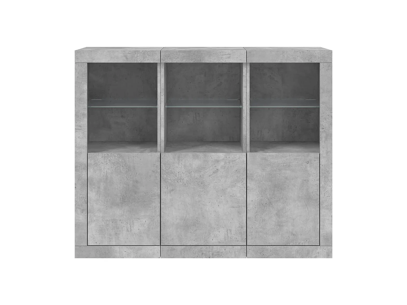 Dressoirs met LED-verlichting 3 st bewerkt hout betongrijs