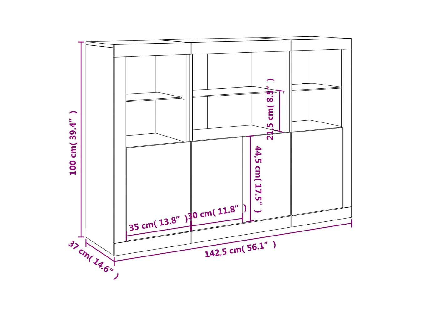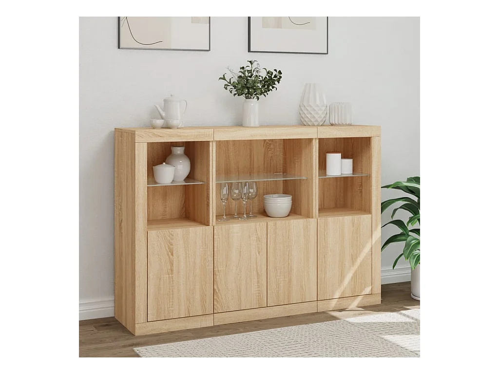 Dressoirs met LED-verlichting 3 st bewerkt hout sonoma eiken