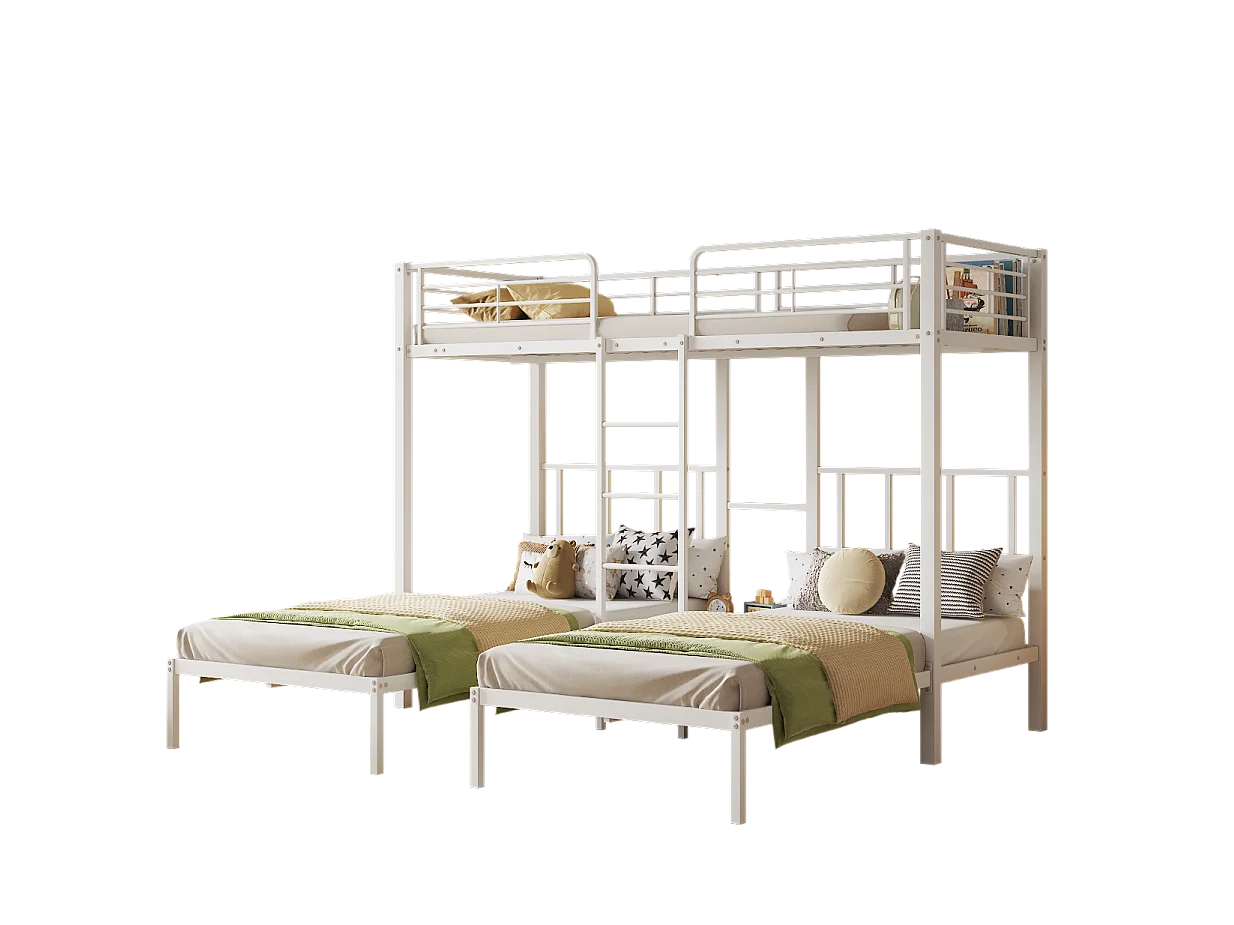 Driedubbele stapelbedden 3 x 90 x 200 cm met ladder en nachtkastje voor kinderen - metaal - wit (zonder matras)