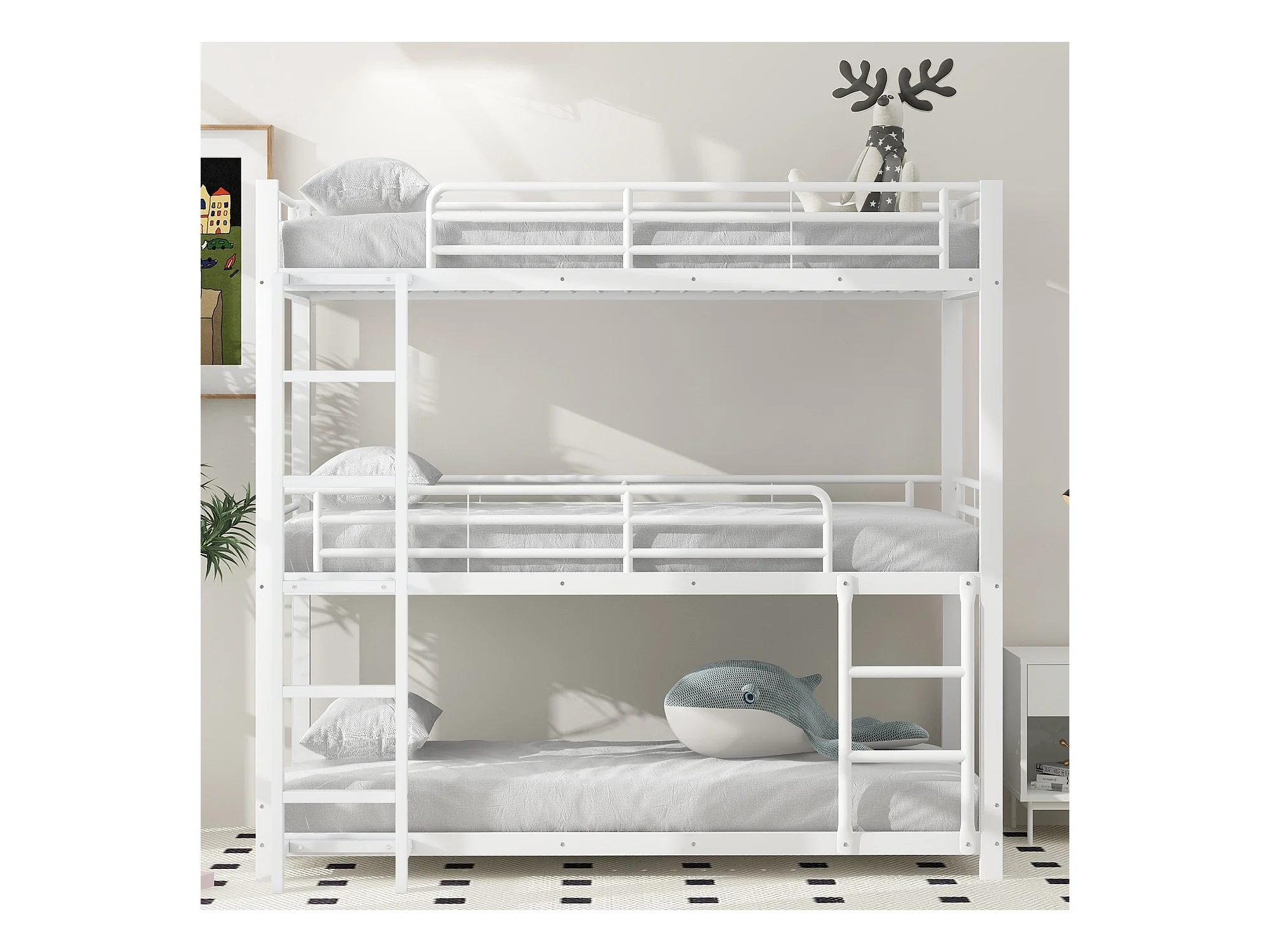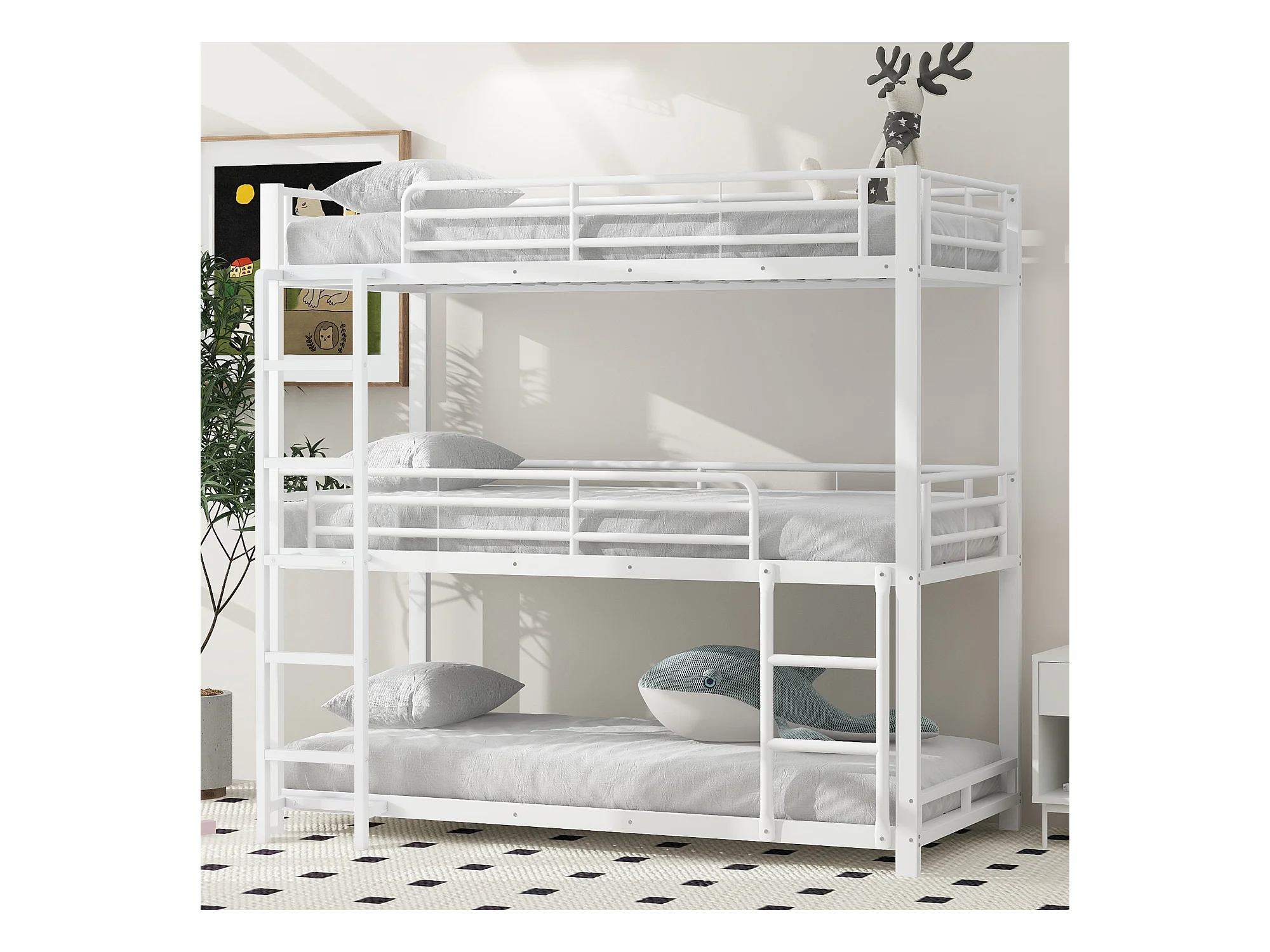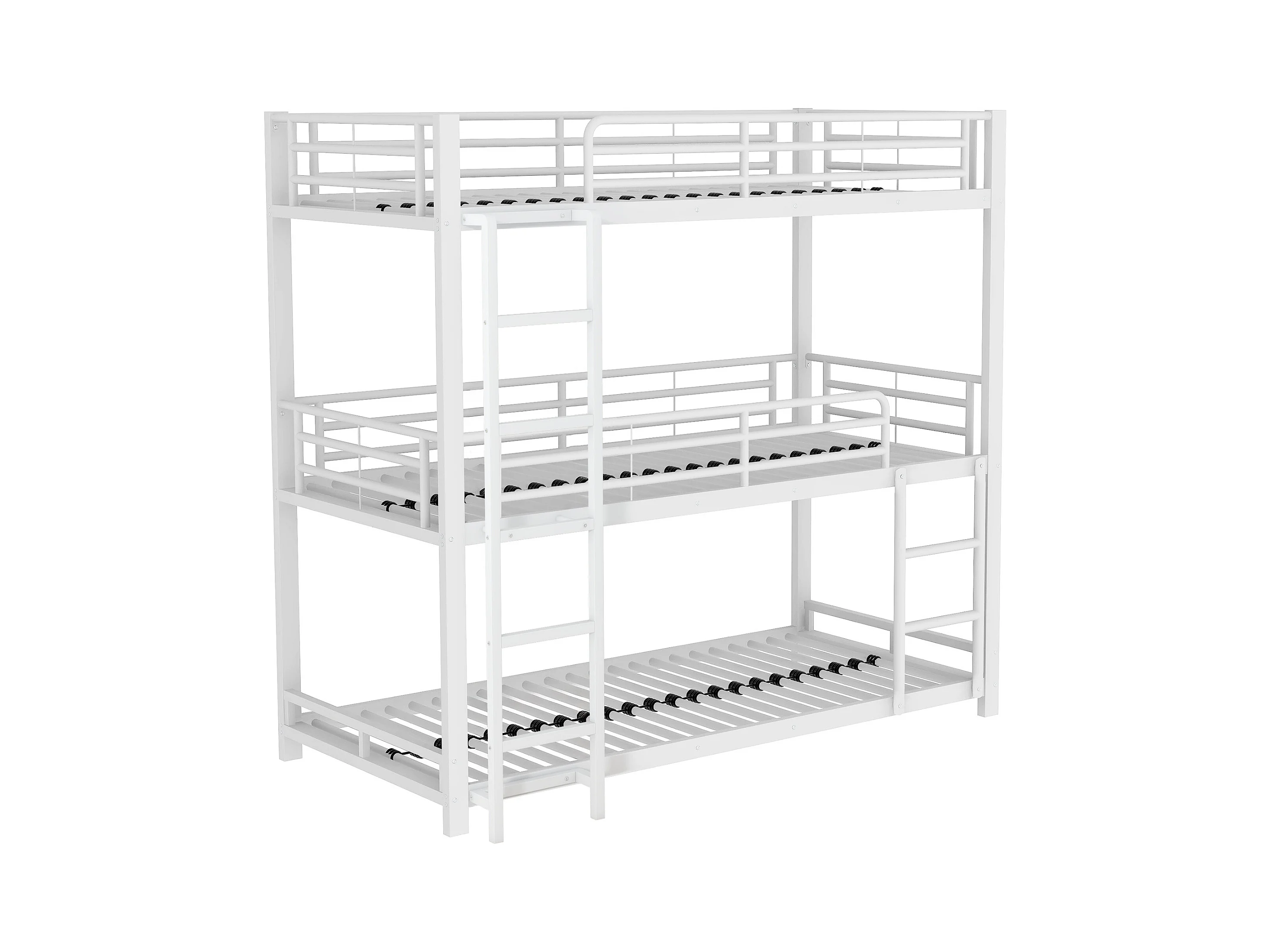 Drievoudig metalen stapelbed met ladder voor kinderen, tieners en volwassenen, metalen frame, wit (204x95x194 cm)