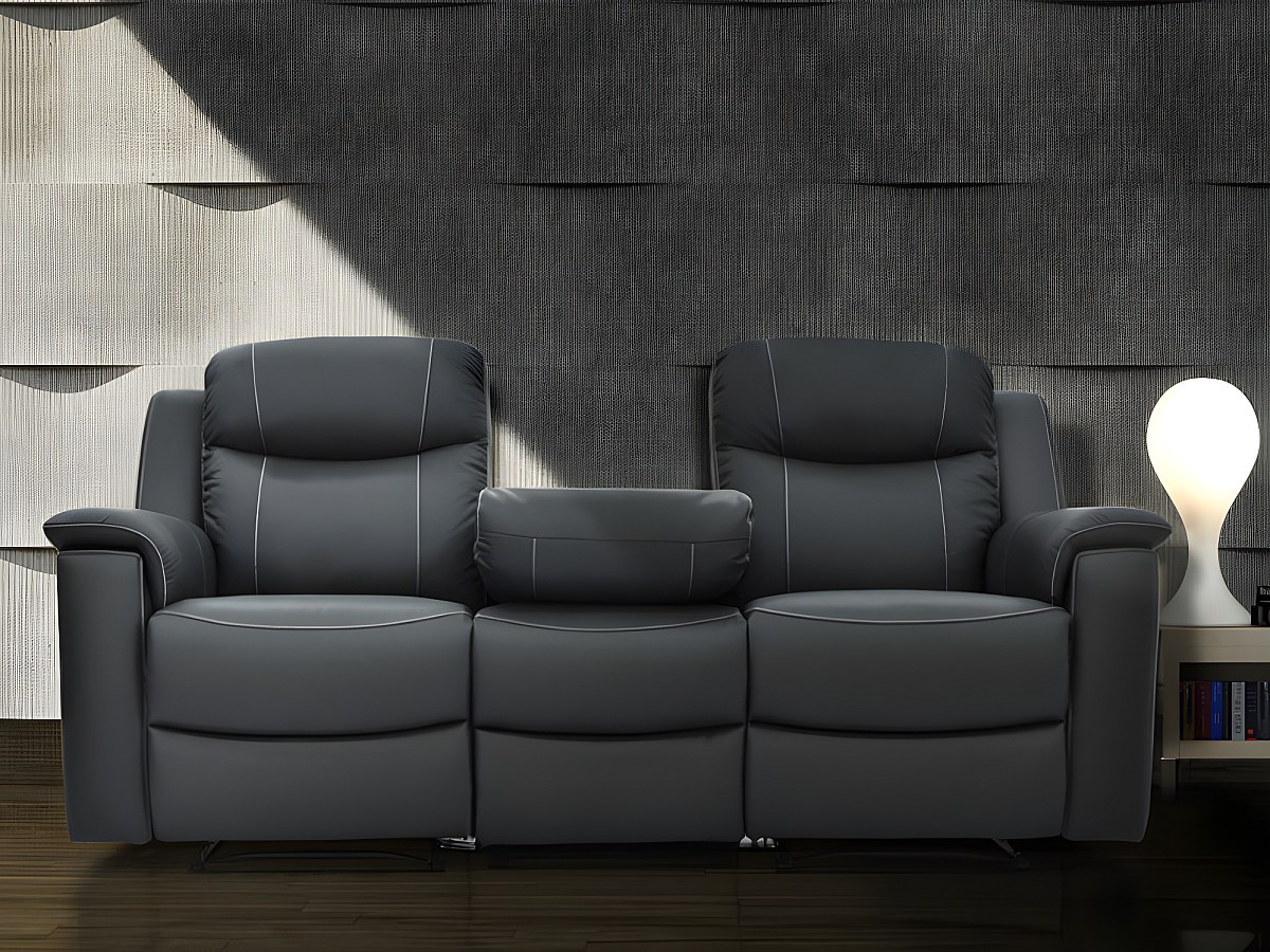 Driezits relaxbank EVASION van leer - grijs