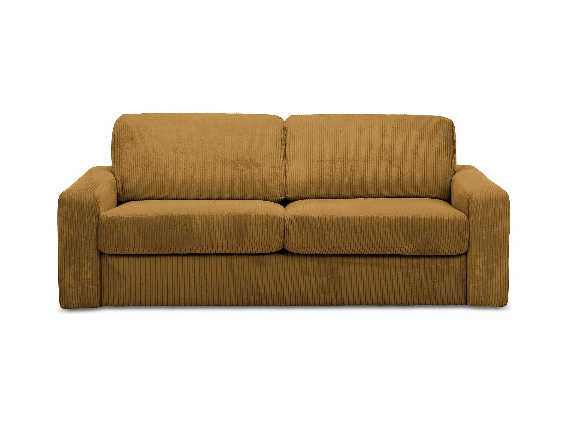 Driezits-slaapbank van mosterdgeel ribfluweel - NONA