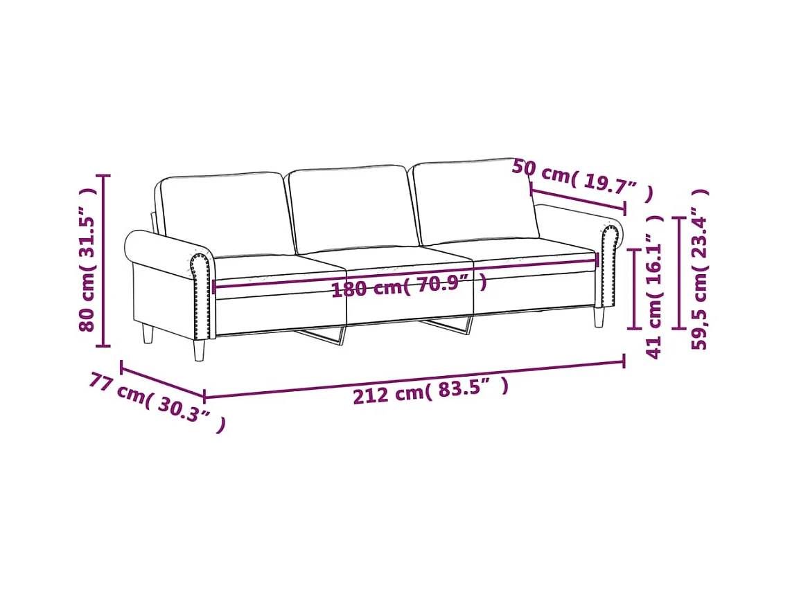 Driezitsbank 180 cm fluweel crèmekleurig