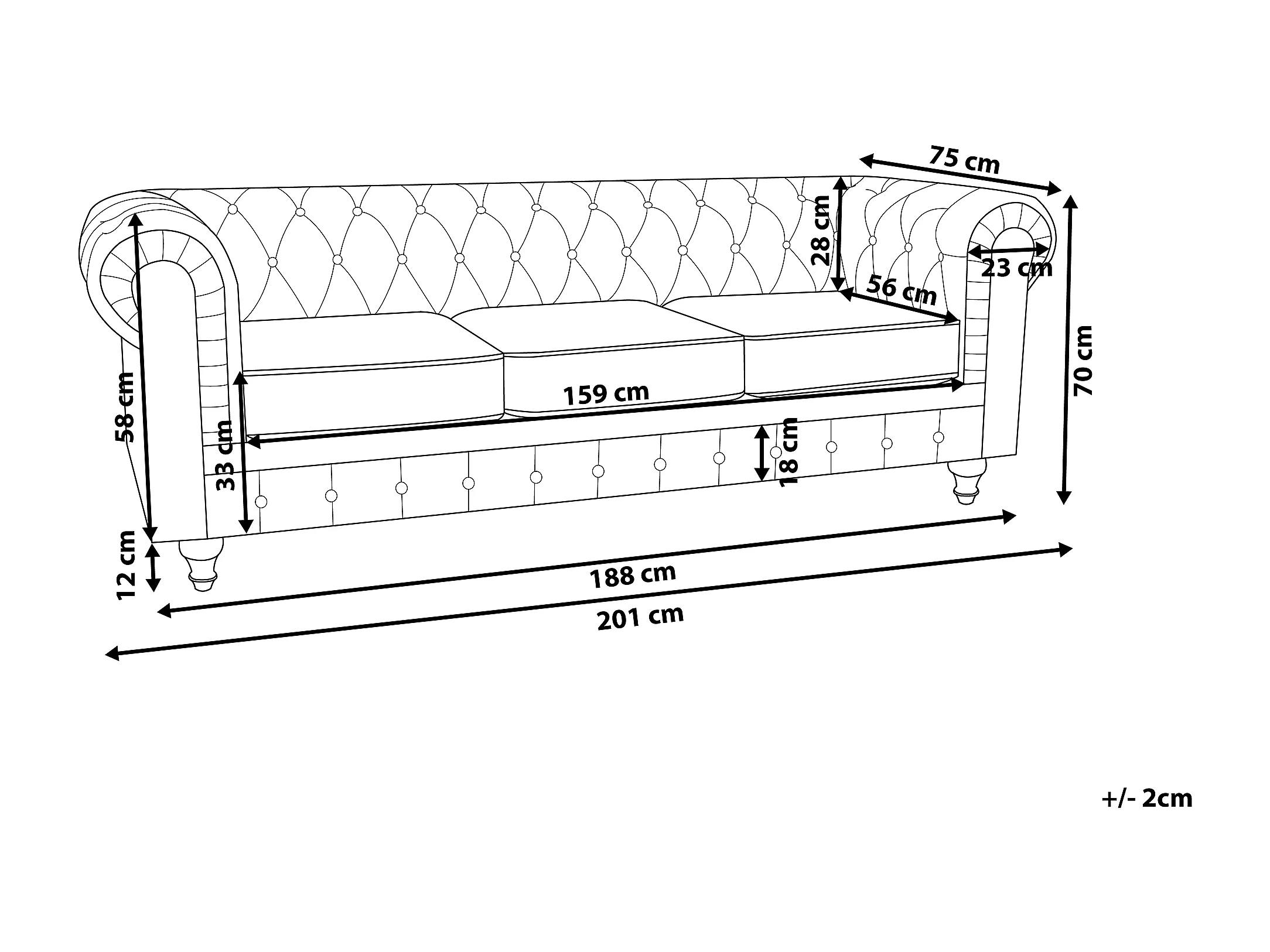 Bank CHESTERFIELD Fluweel Donkerrood 3-zitter