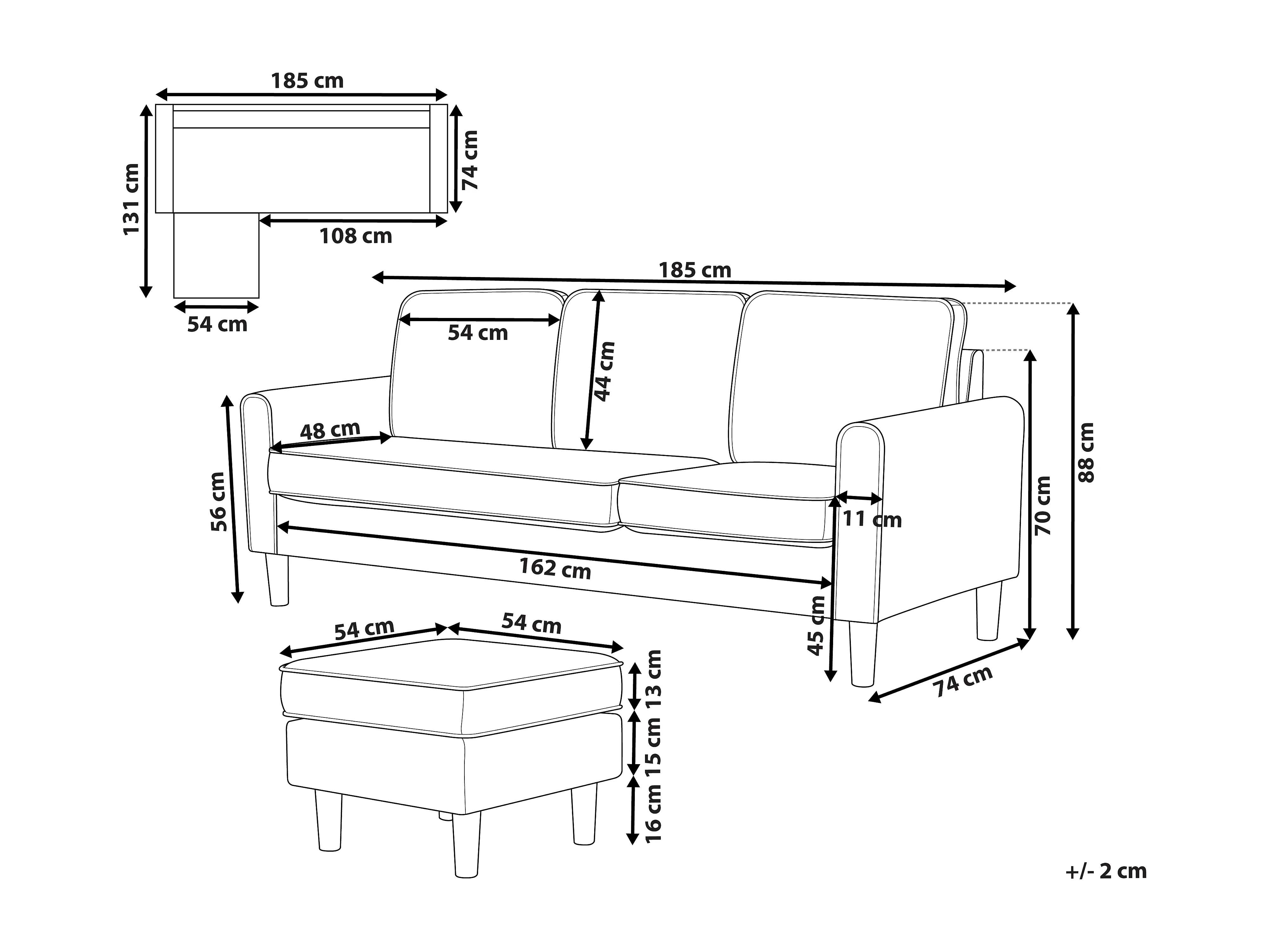 Bank AVESTA Stof Beige Met ottomaan 3-zitter