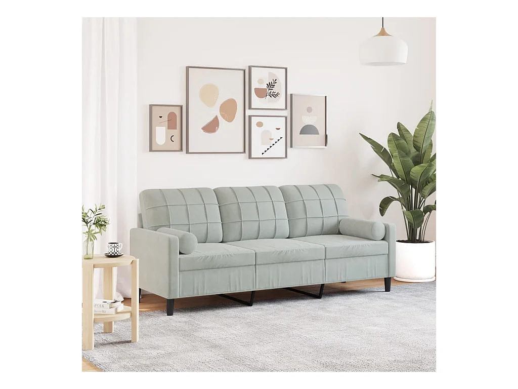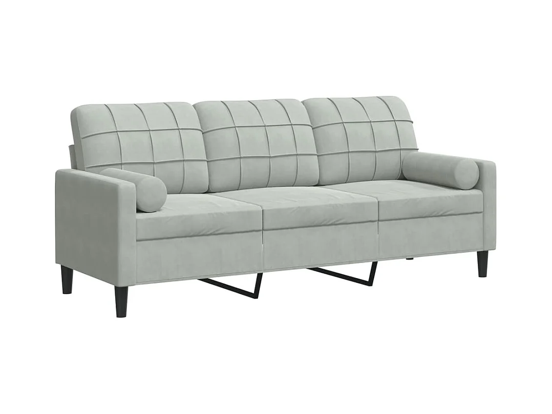 Driezitsbank met sierkussens 180 cm fluweel lichtgrijs