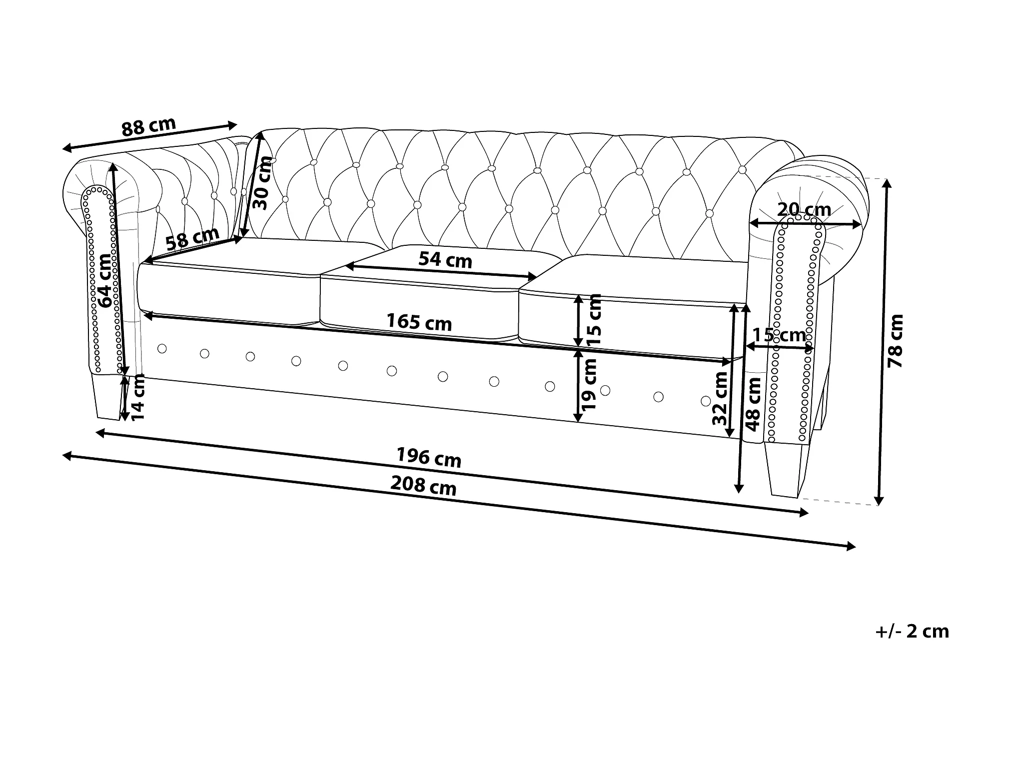 Bank CHESTERFIELD Stof Beige 3-zitter