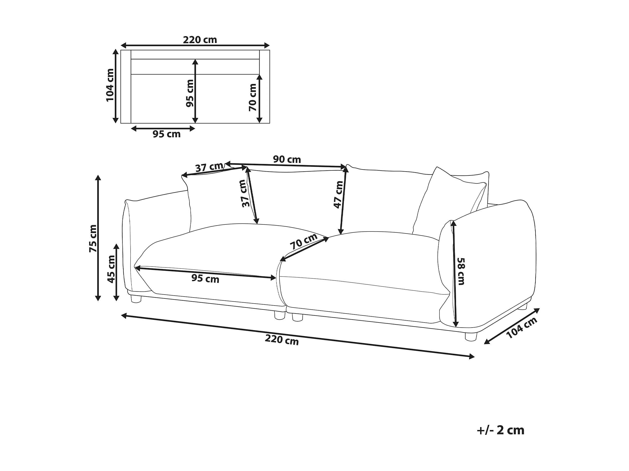 Bank LUVOS Stof Lichtgrijs 3-zitter
