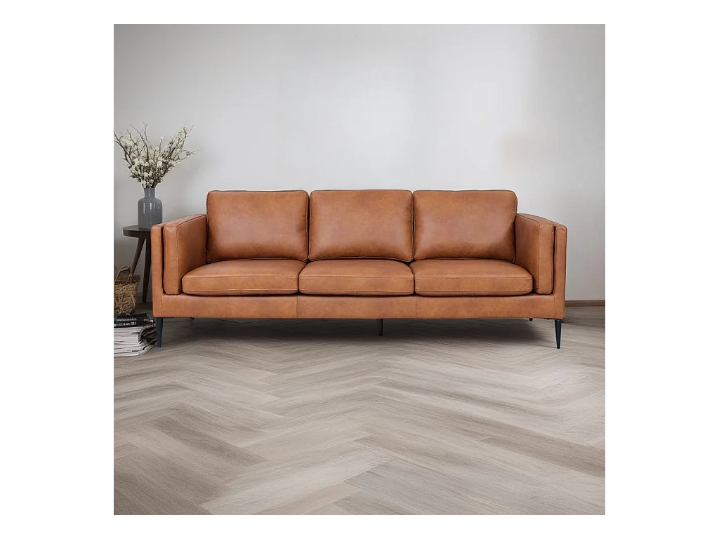 Driezitsbank Valencia van leer - bruin