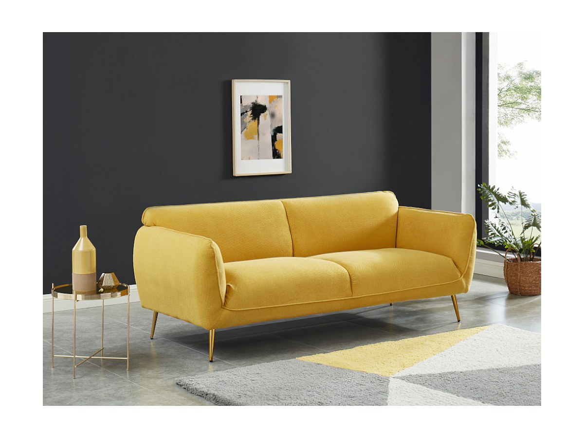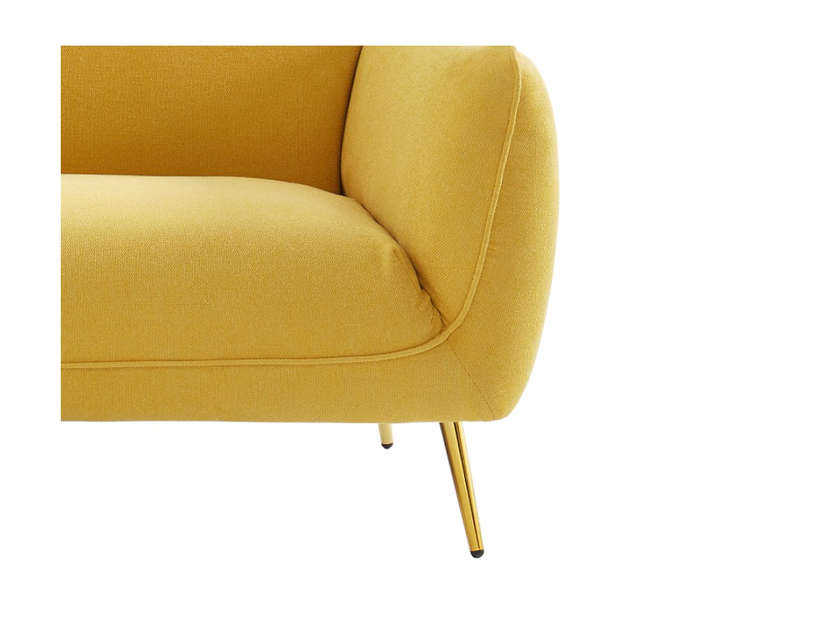 Met zijn fijne poten van goudkleurig metaal, zijn mooie ronde vormen en zijn smalle armleuningen, biedt de zitbank DELVA u maximaal comfort en elegantie.