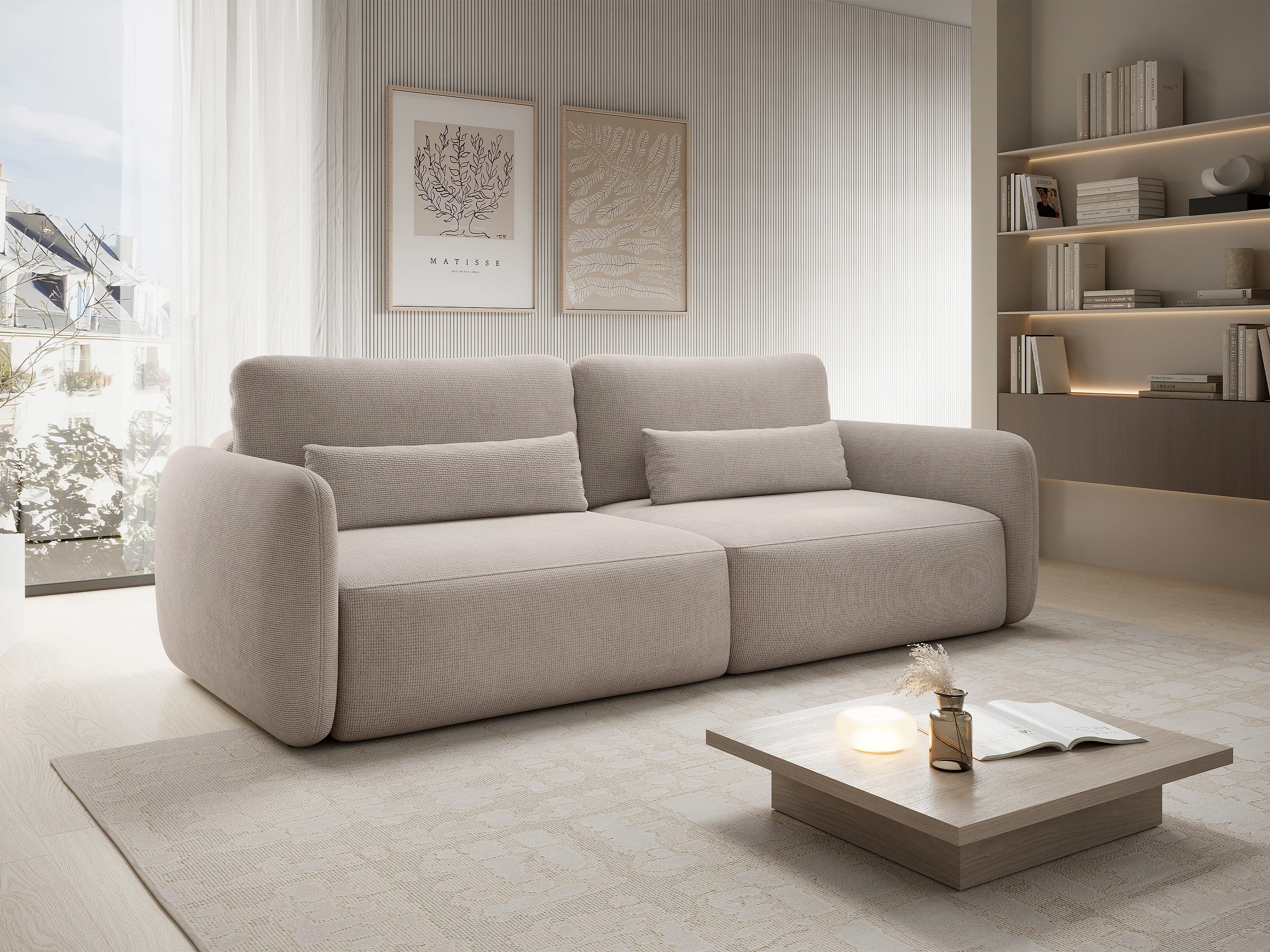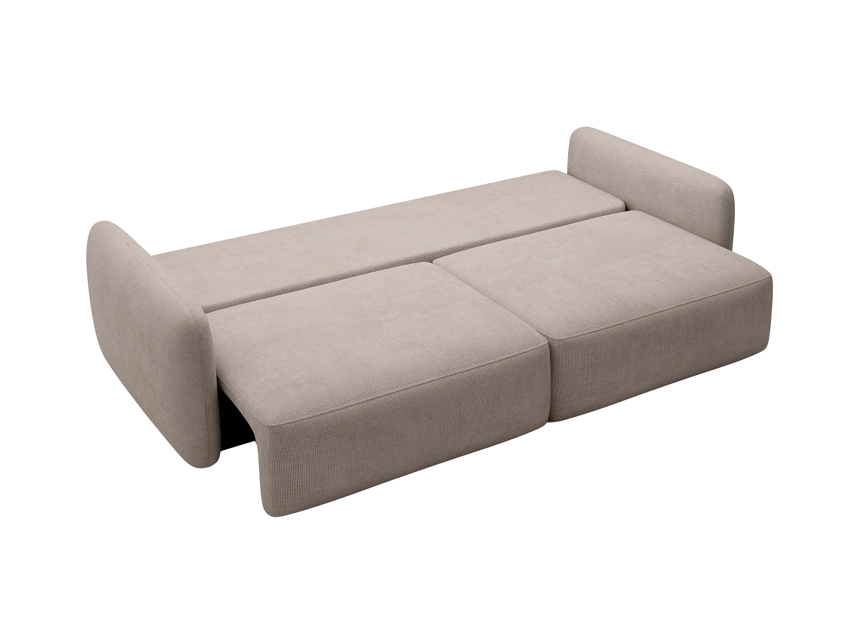 Driezitsslaapbank van taupegrijze stof met textuur VOPOZA