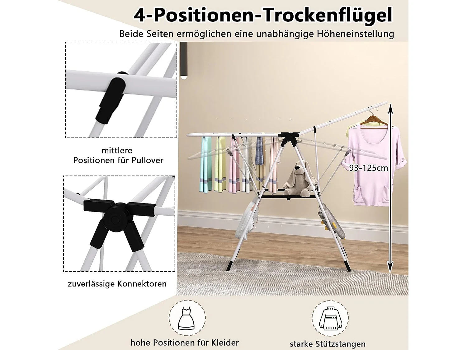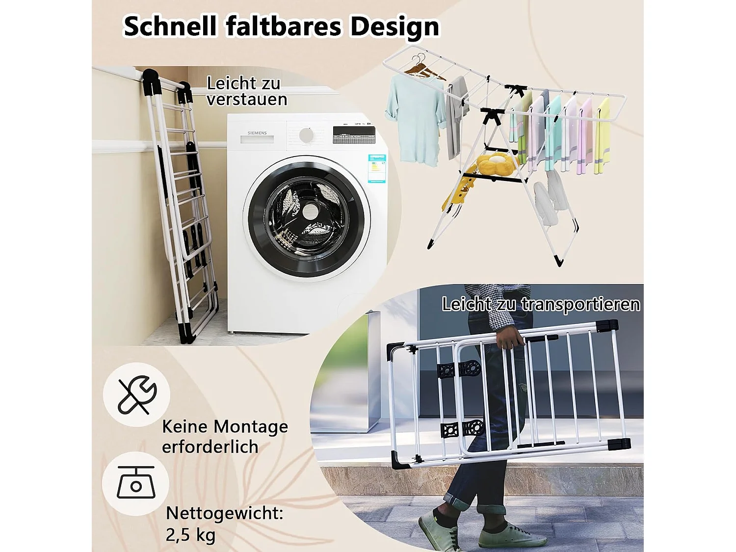 Droogrek inklapbaar staand droogrek uittrekbaar wasdroger met vleugels voor lange wasbeurten vleugelwasrek voor binnen en buiten (130-137) x 56 x (98-124) cm