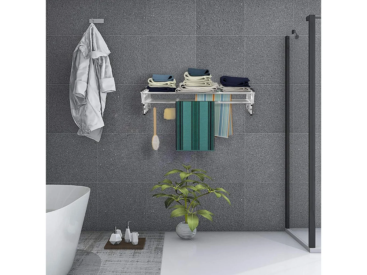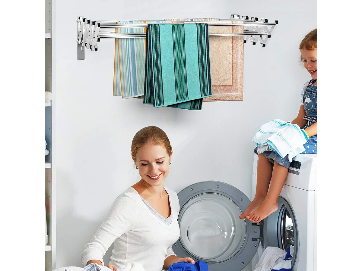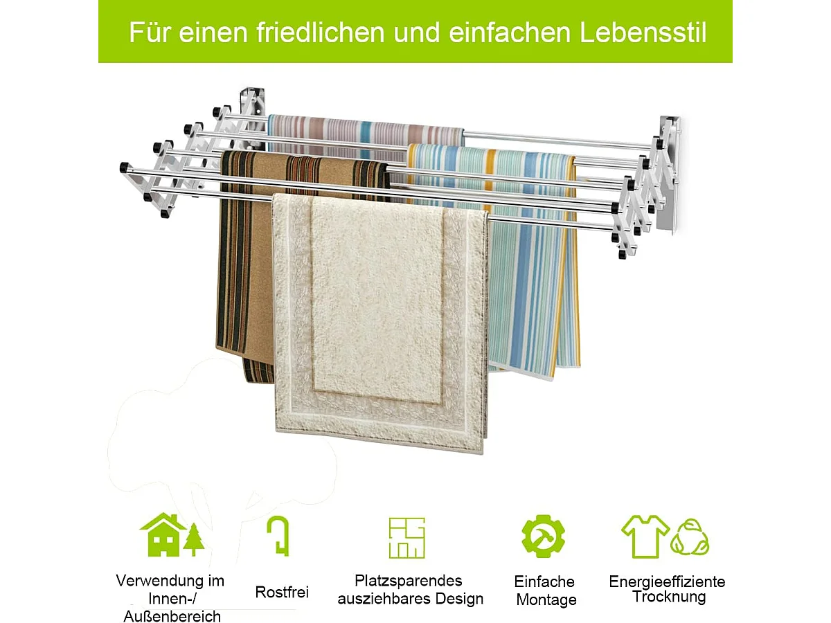 Droogrek voor wandmontage, wanddroger, uittrekbaar van roestvrij staal met 8 stangen, ruimtebesparende wandwasdroger, draagkracht 25 kg, voor bijkeuken, badkamer