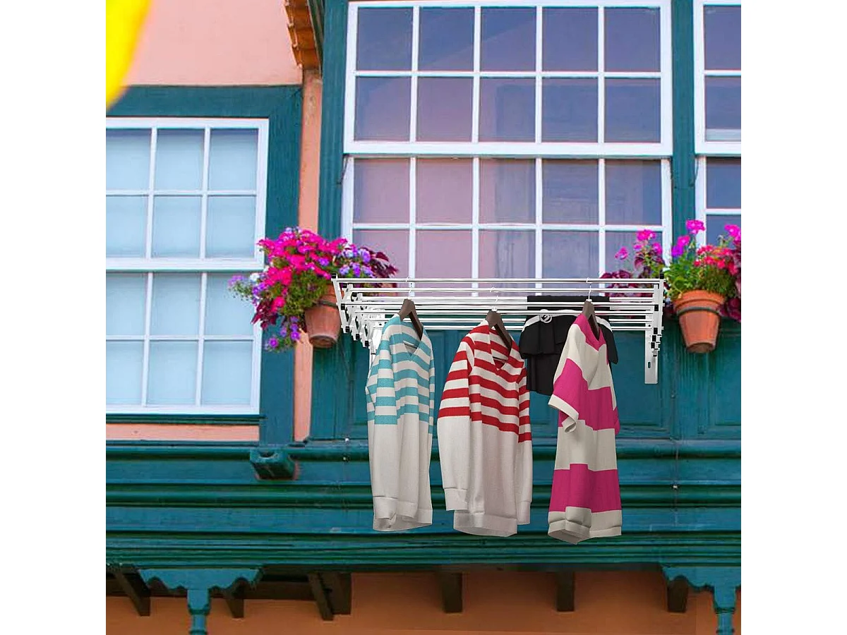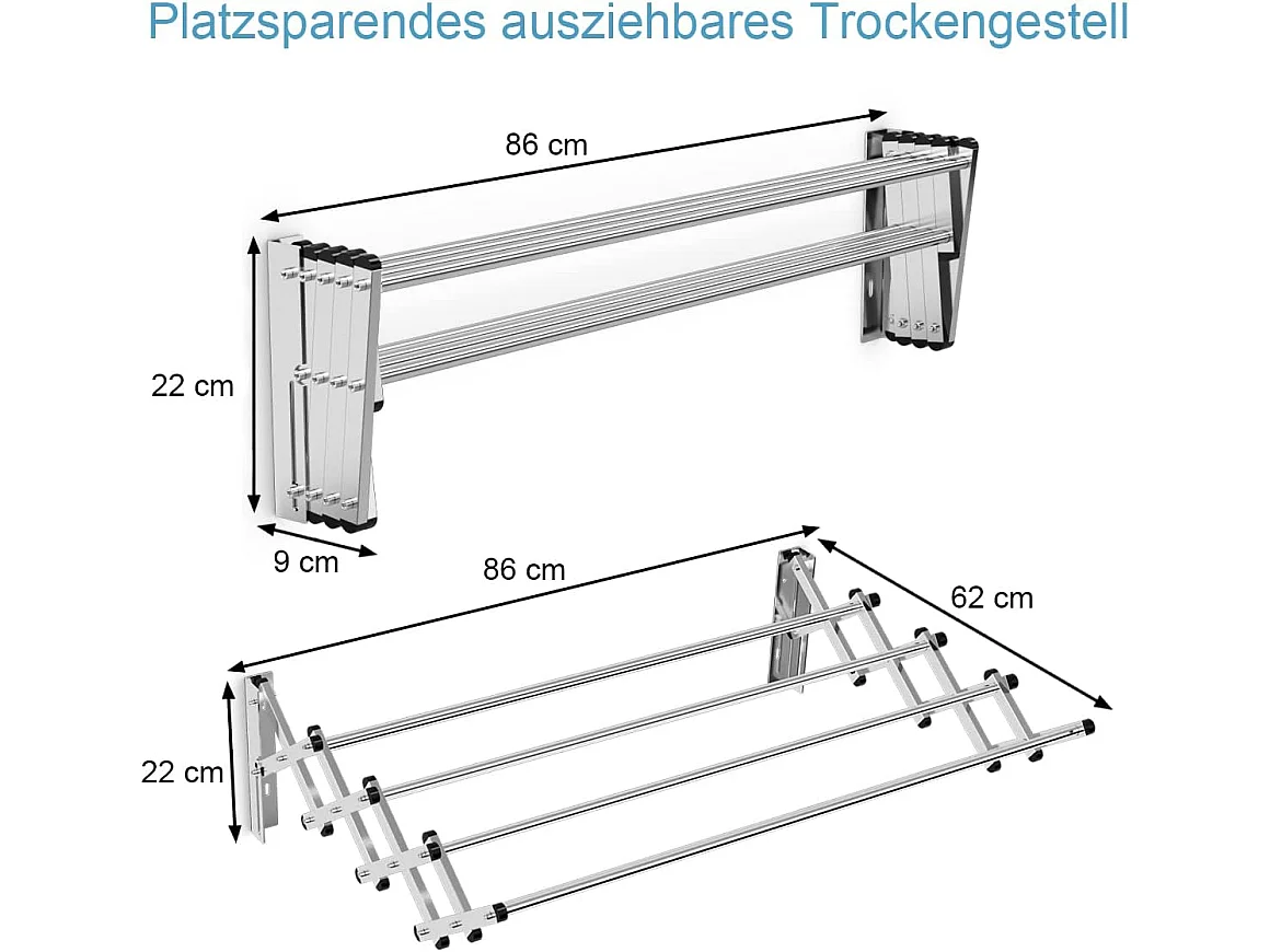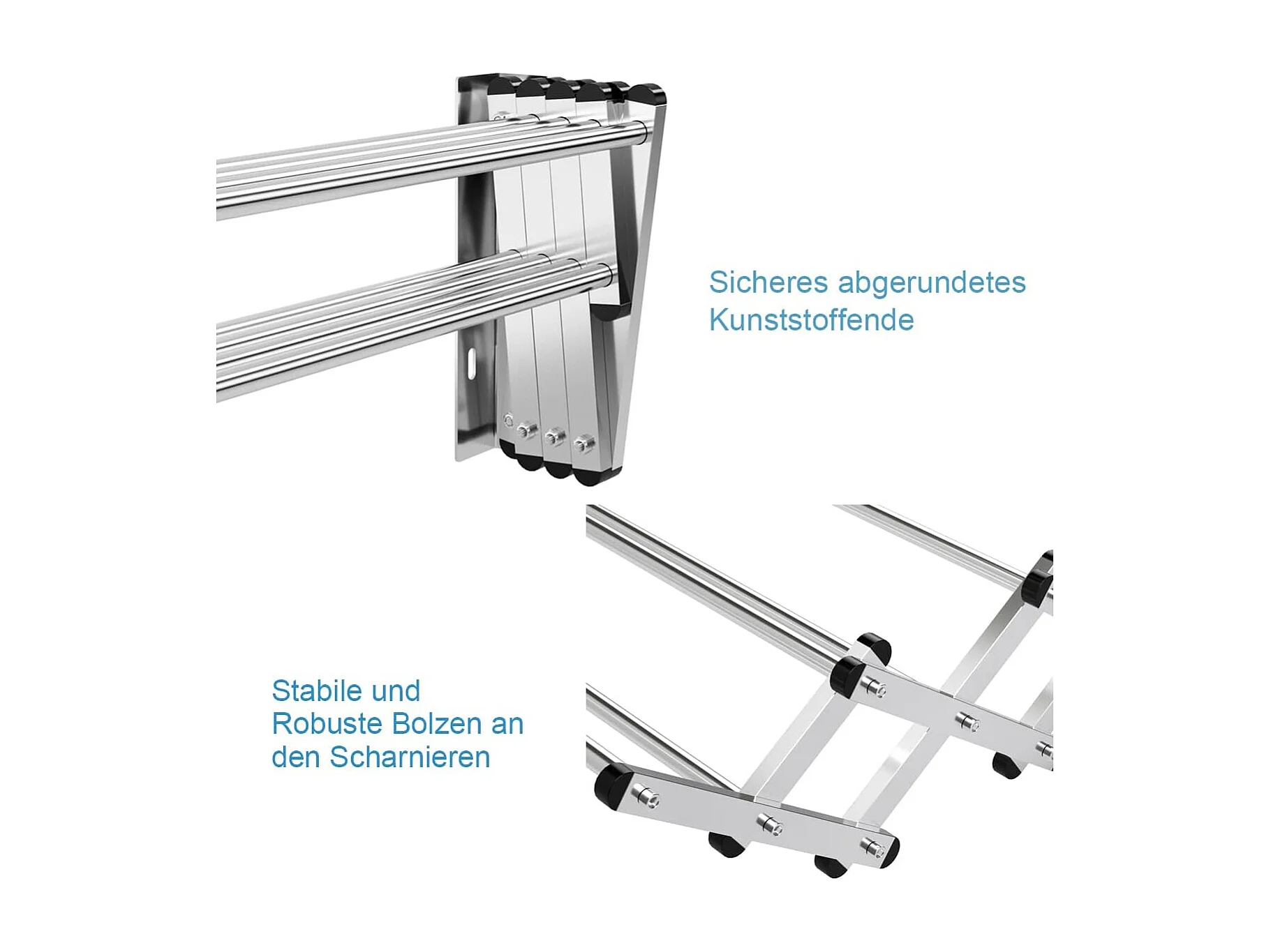 Droogrek voor wandmontage, wanddroger, uittrekbaar van roestvrij staal met 8 stangen, ruimtebesparende wandwasdroger, draagkracht 25 kg, voor bijkeuken, badkamer