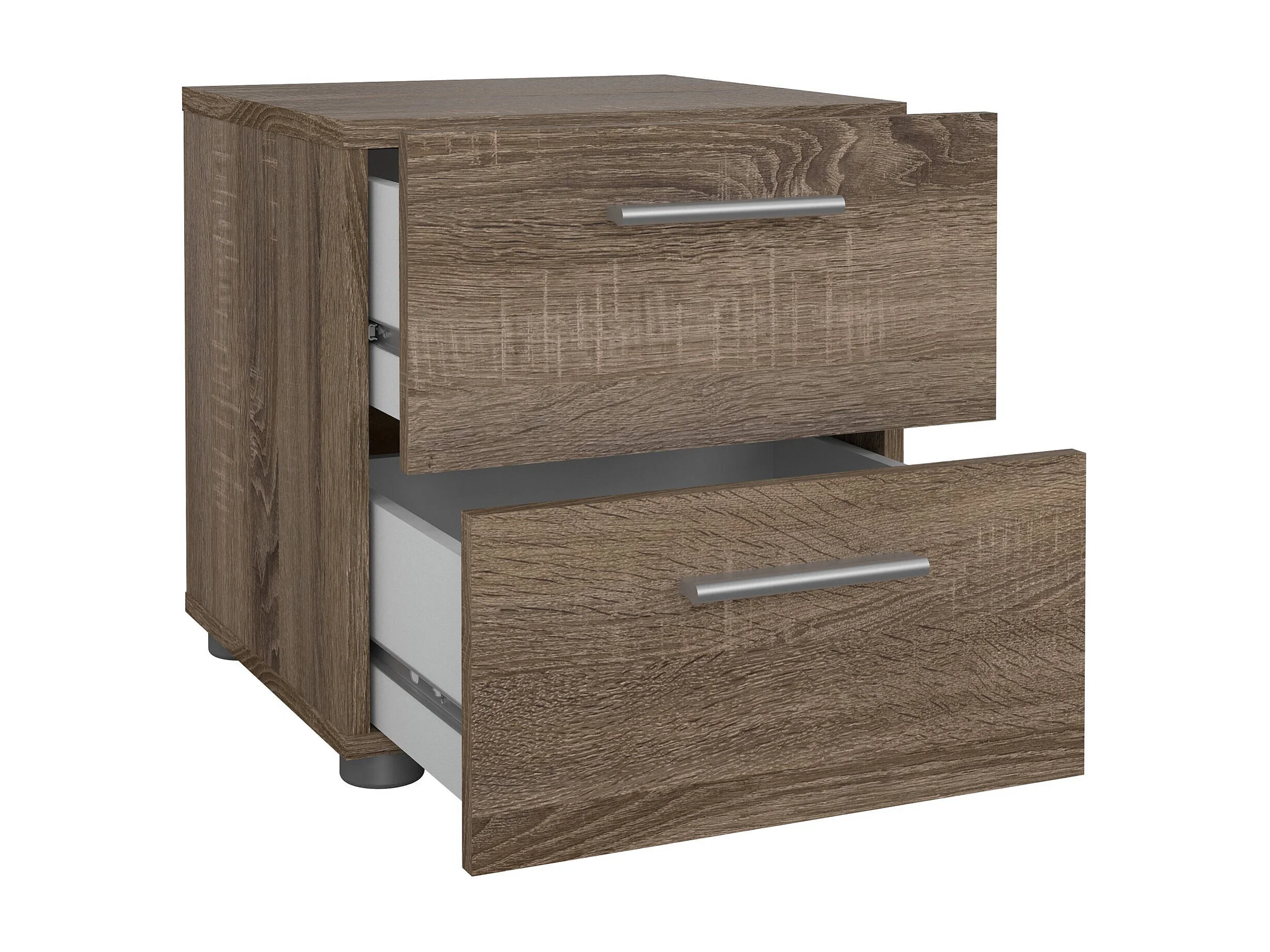 Druotol nachtkastje, Lage ladekast, Nachtkastje, Bedplank, 40x40 h42 cm, Eiken en Wit