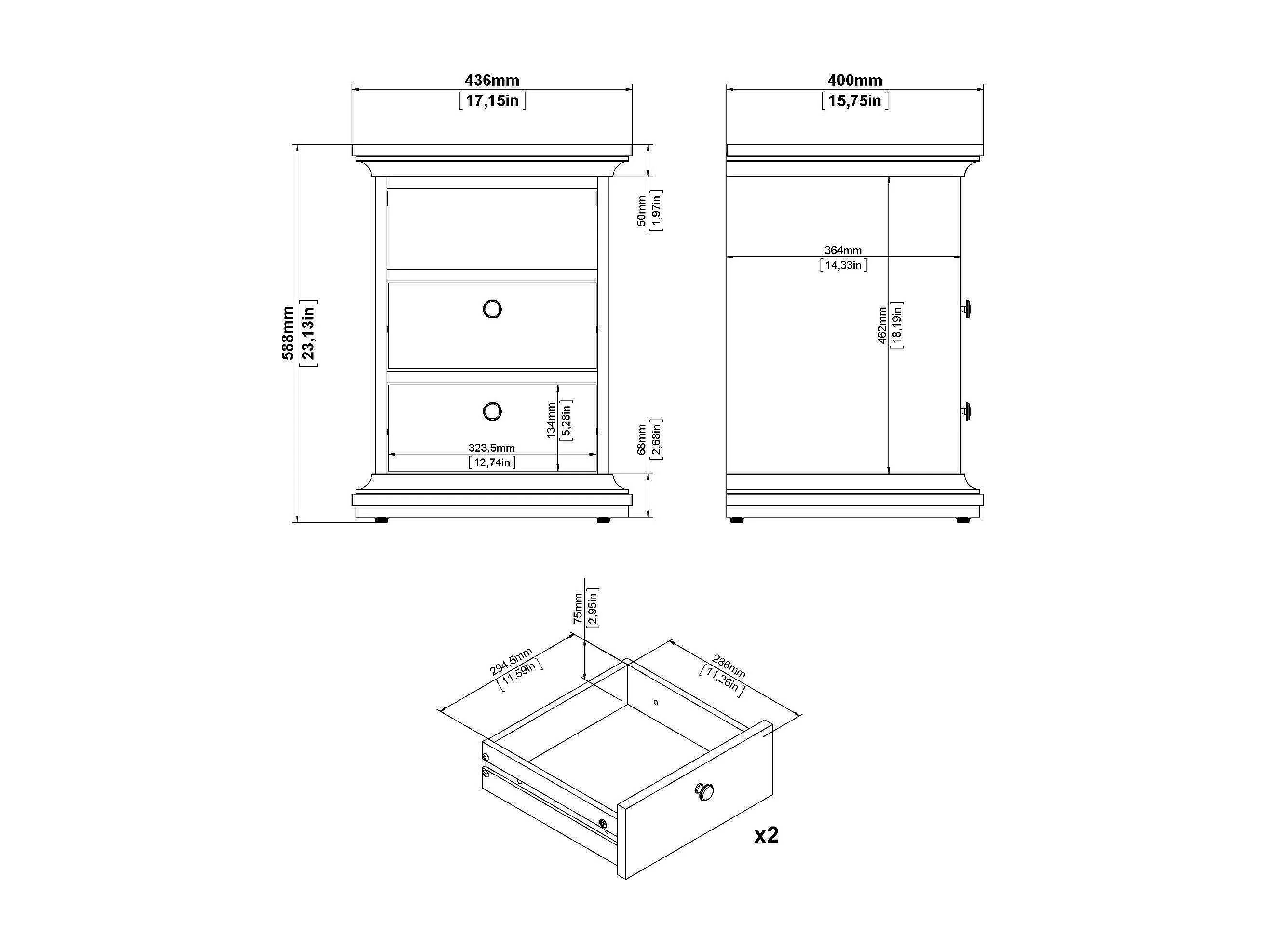 Drossin nachtkastje, Lage ladekast, Nachtkastje, Bedplank, 44x40 h59 cm, Wit